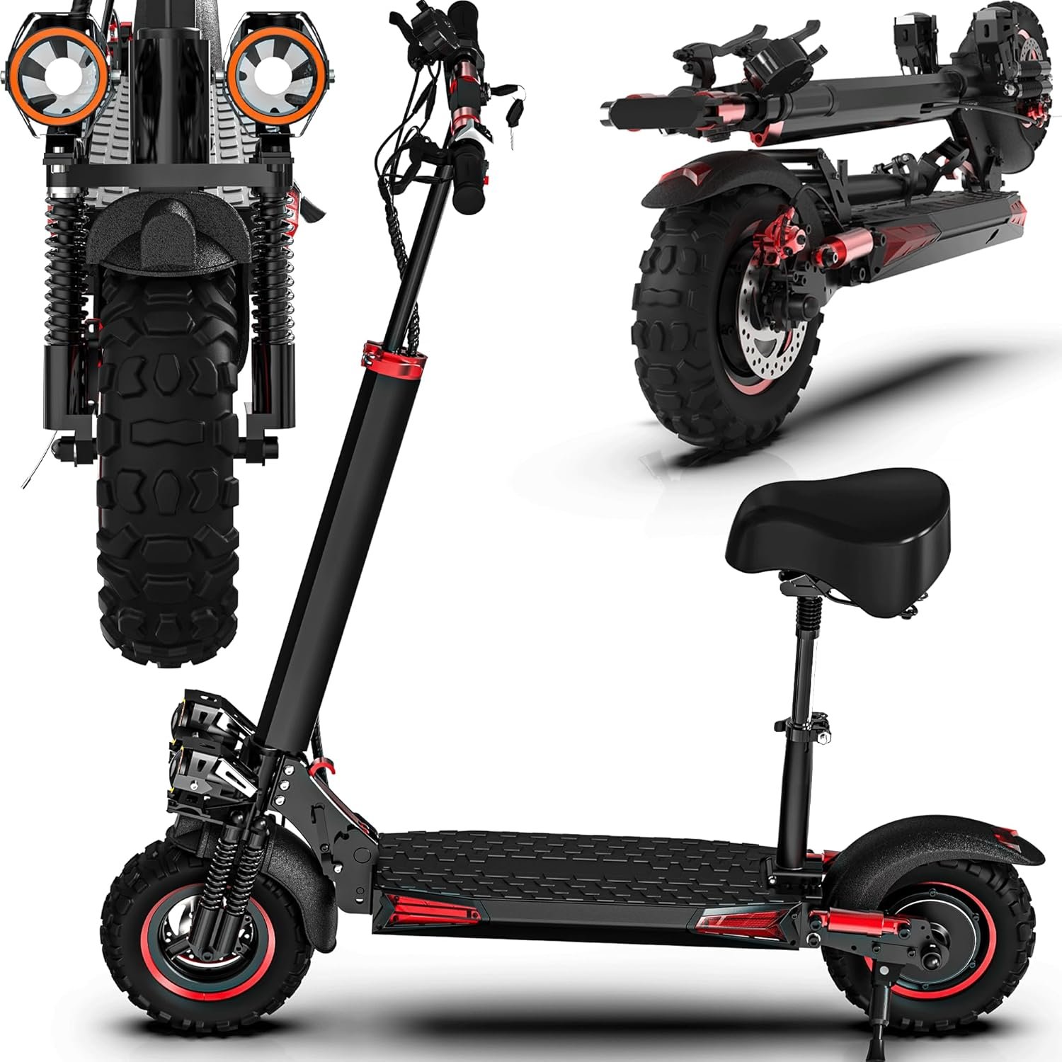 Off Road Electric Scooter Adults, 1200W Motor, 48V 18/21AH Battery, 11"e; All-Terrain Tires, Heavy Duty E-Scooter with Dual Suspension with Seat