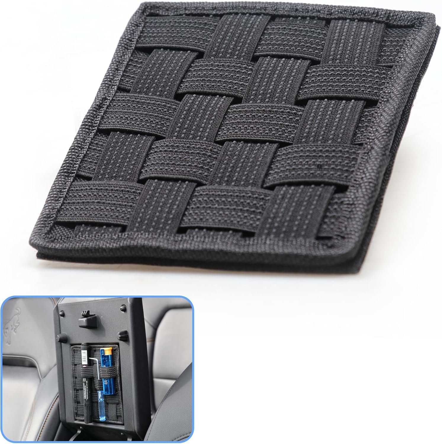 Excelente material: el panel organizador de consola central está hecho de cincha elástica antideslizante de doble cara y cinta de alta resistencia; elástico con textura de grano, evita eficazmente el deslizamiento para un almacenamiento más cómodo y estable
