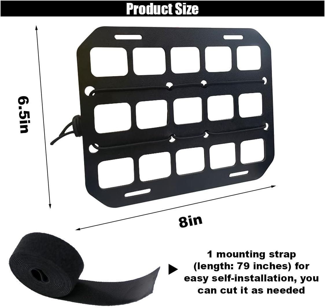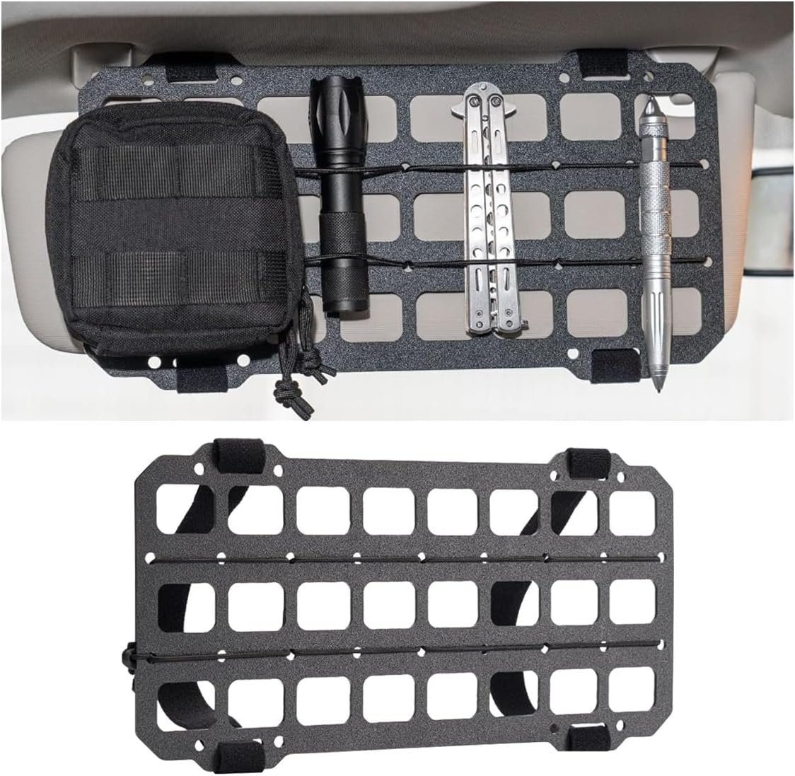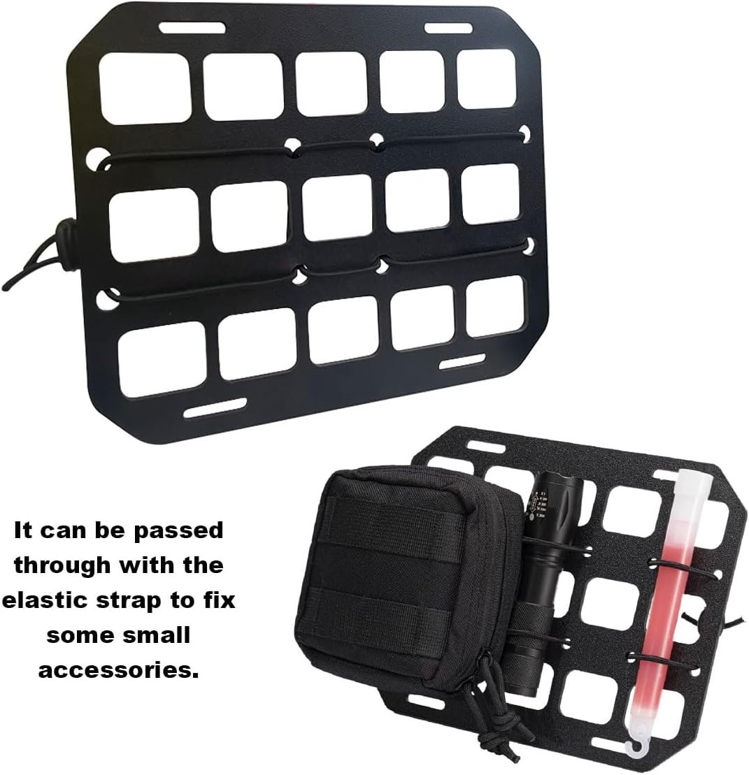 Aumenta la eficiencia del espacio: los paneles rígidos Molle pueden añadir espacio de almacenamiento al interior del automóvil, midiendo 8 x 6.5 x 0.12 pulgadas. Almacena gafas de sol, bolsas tácticas, bolígrafos, linternas, martillos de vidrio, multiherramientas, herramientas EDC/emergencia y otros artículos para un acceso rápido y para mantener tu vehículo ordenado.
