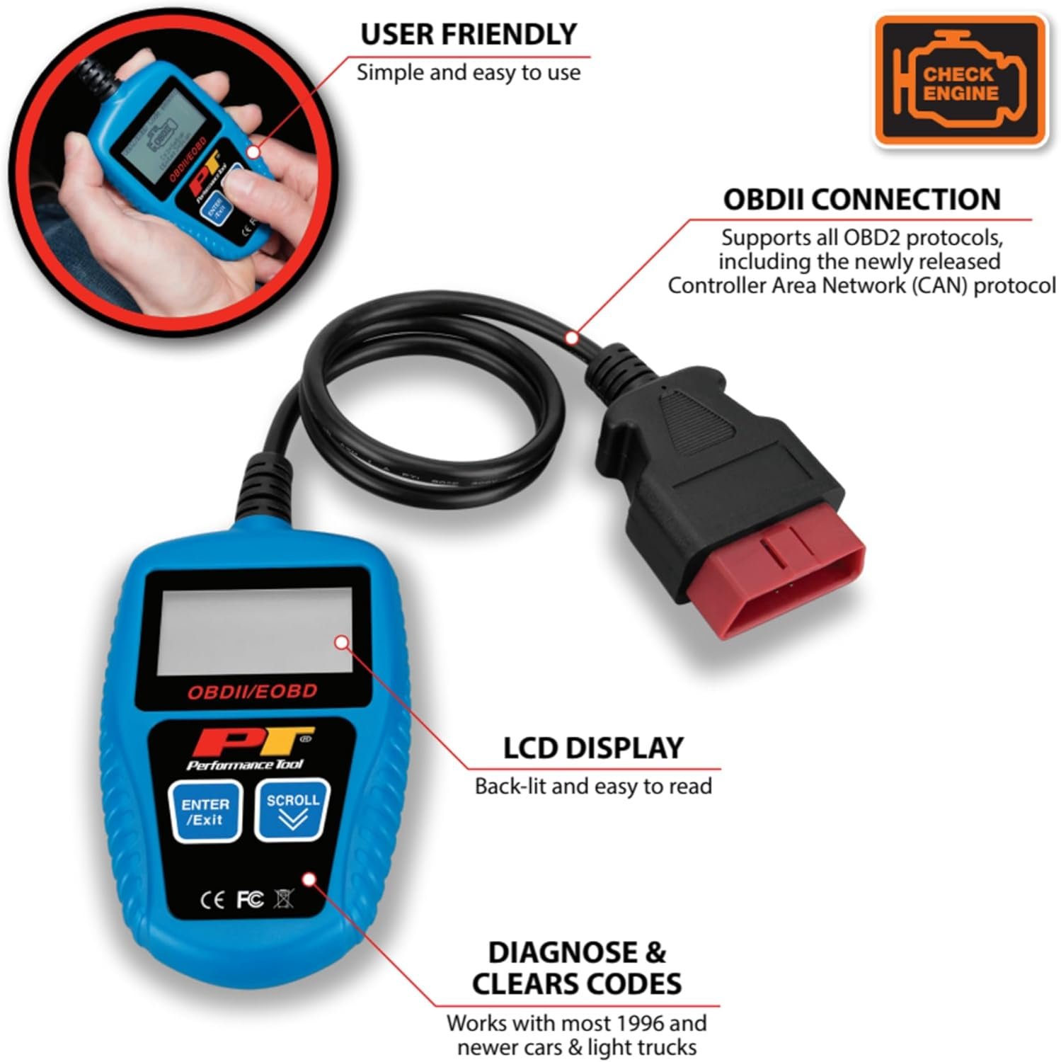 Performance Tool W2976 Herramienta multilingüe universal del escáner CAN OBDII para comprobar la luz del motor, el diagnóstico y el estado de preparación de la emisión