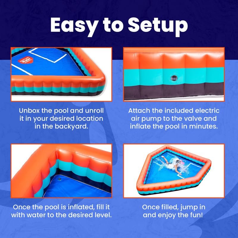 Piscina inflable – Juego de béisbol y natación en forma de placa para el hogar – Piscina de plástico duradero para niños y adultos – Incluye bomba de aire eléctrica
