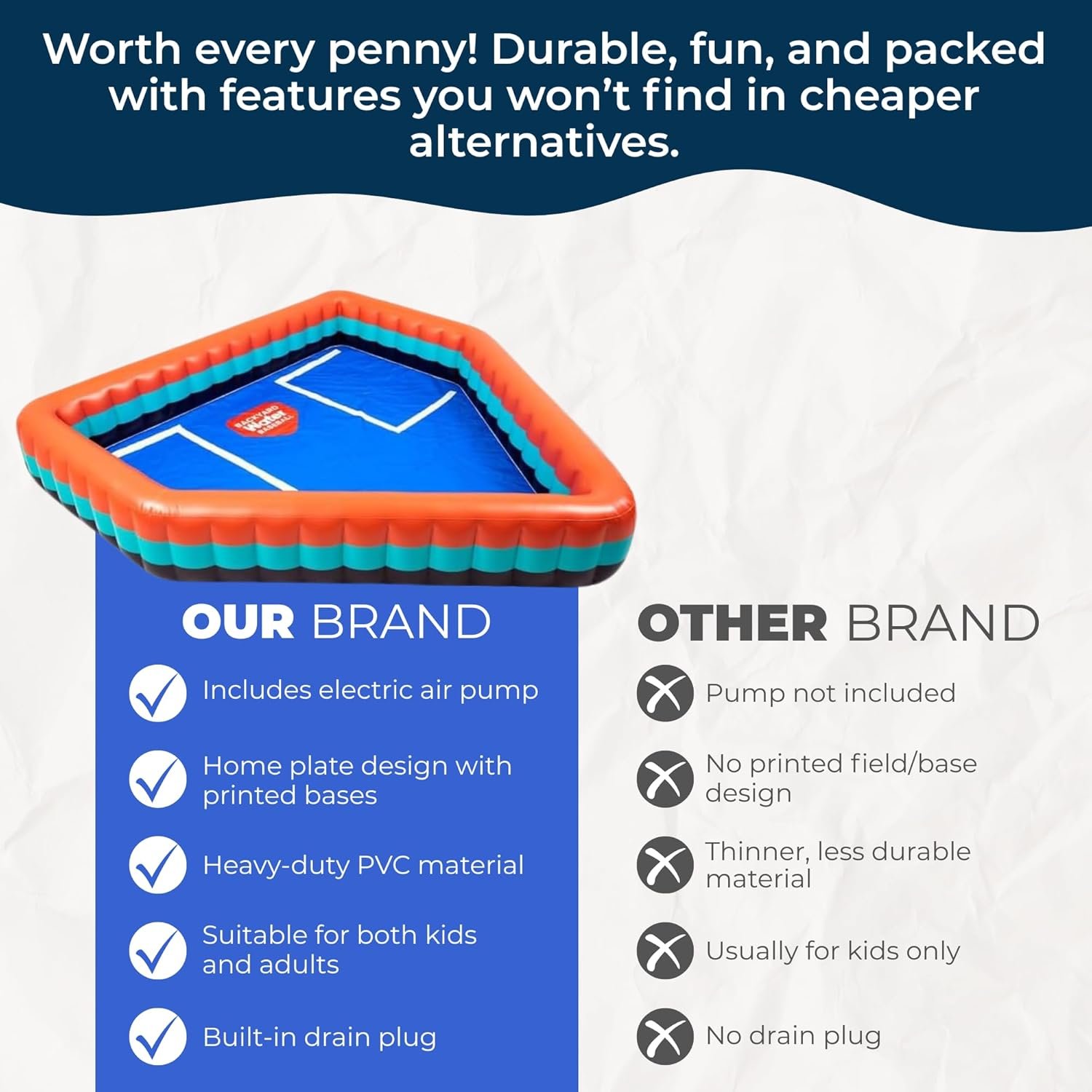 Diseño único de plato para el hogar: lleva la emoción del béisbol directamente a tu patio trasero con esta piscina inflable en forma de placa de casa. Perfecto para juegos de piscina interactivos para niños y adultos, añadiendo un toque divertido y emocionante a cada reunión de verano.