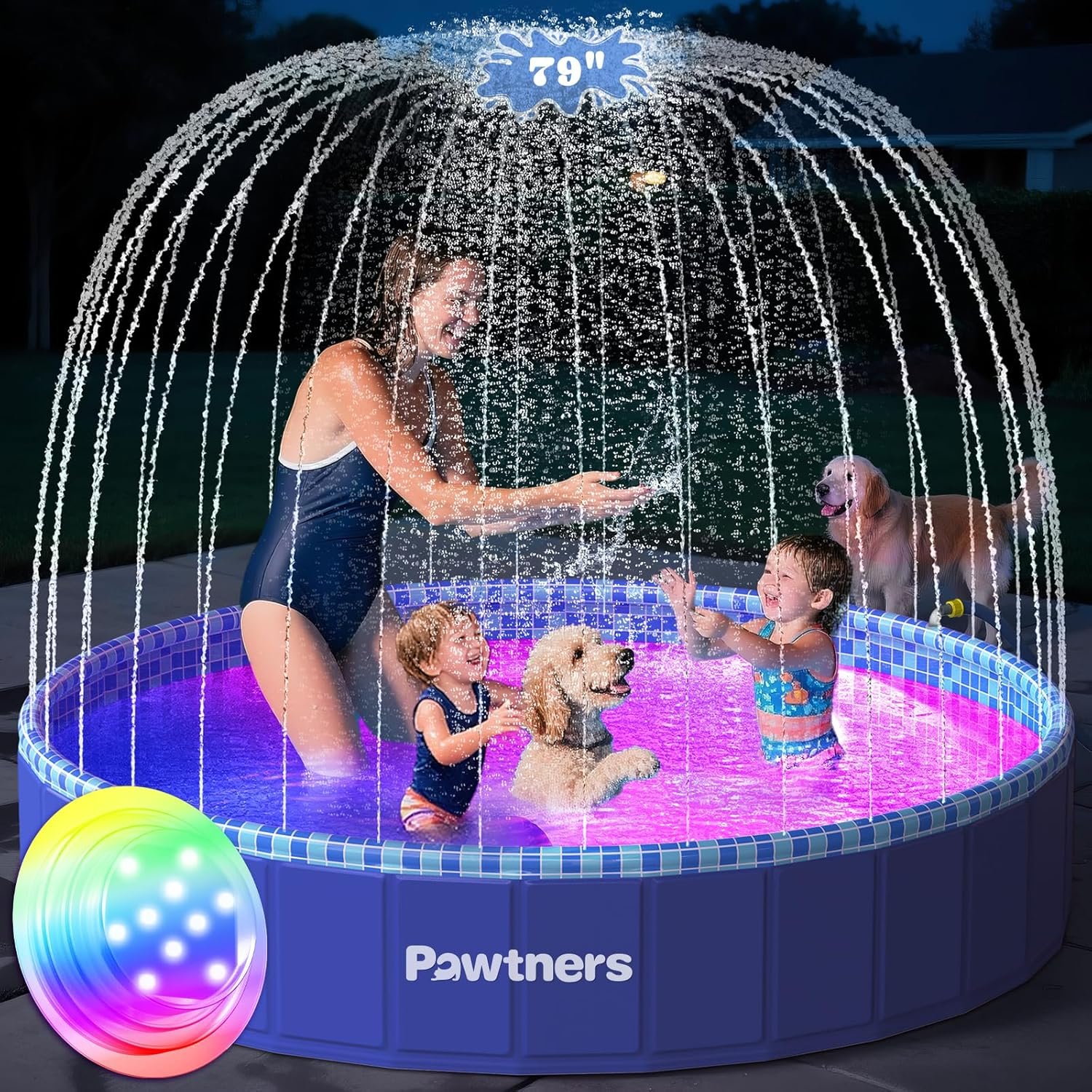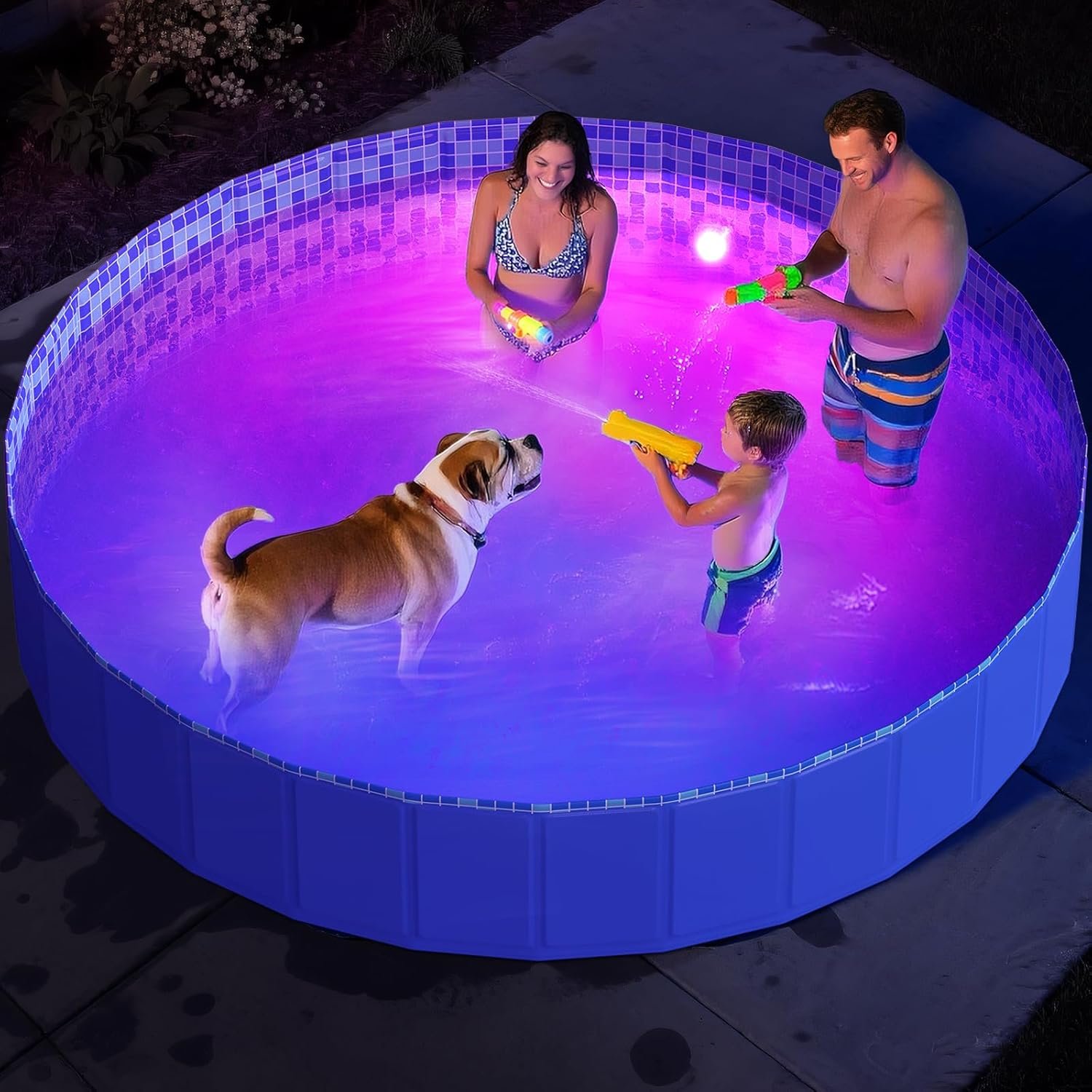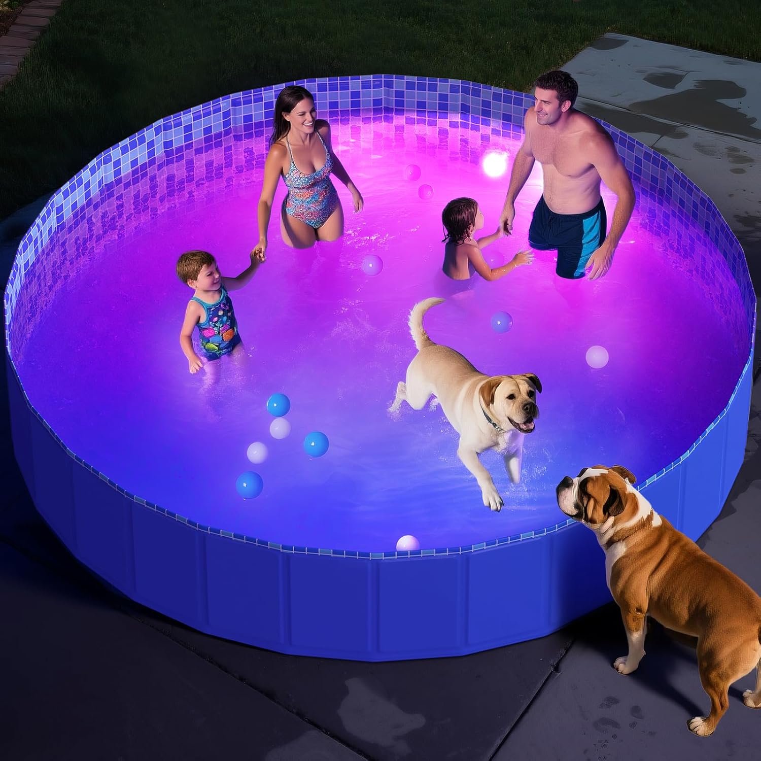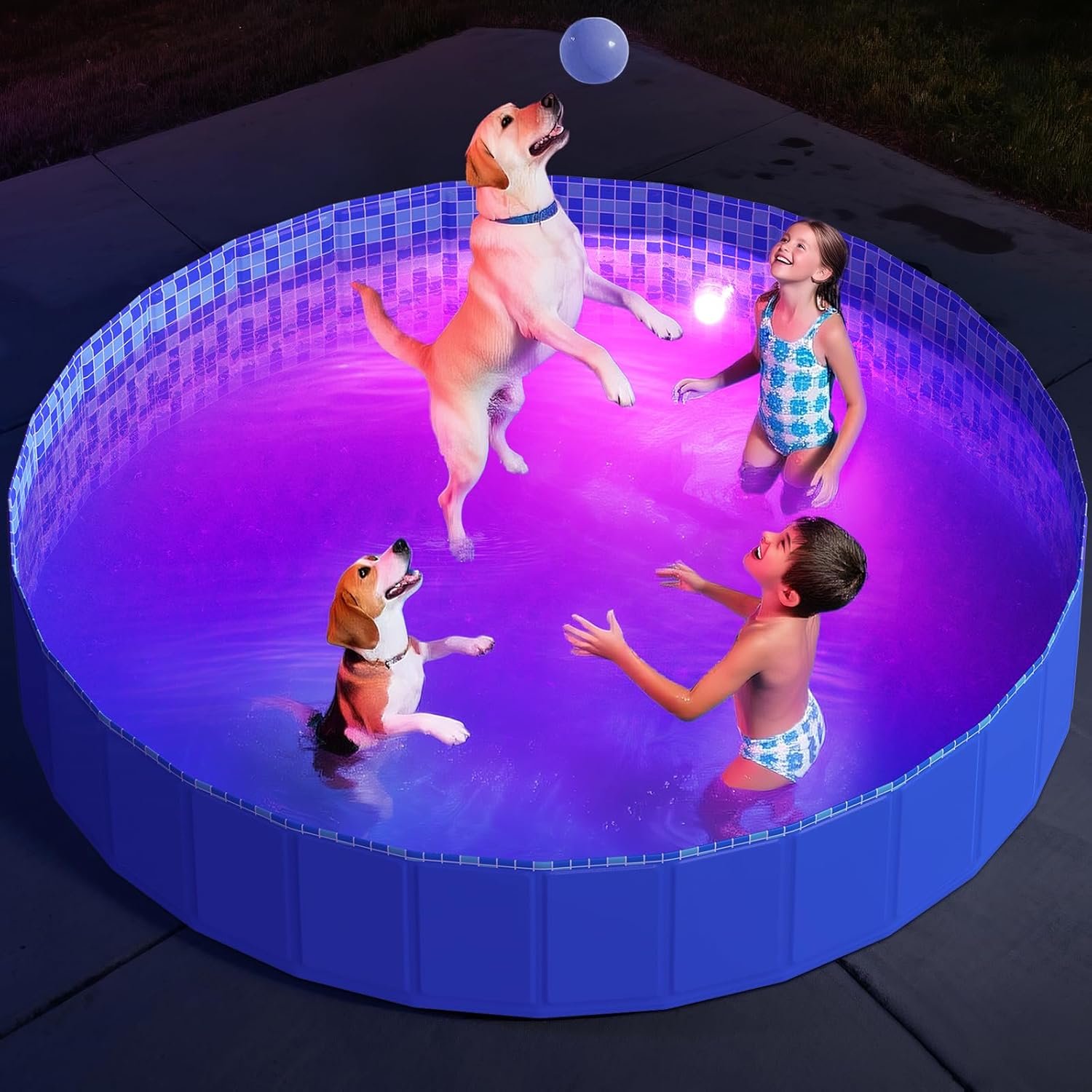 Piscina plegable para perros con luz LED RGB, piscina plegable de plástico duro de 94 pulgadas con control remoto para perros pequeños, medianos y grandes, bañera de baño para mascotas, piscina para