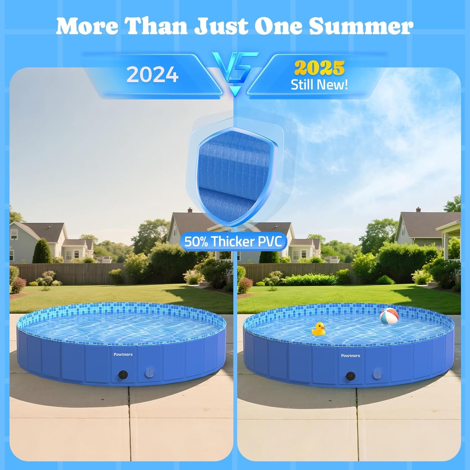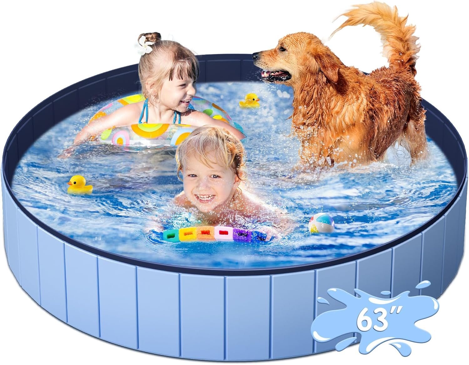 Fácil de usar y almacenar: configura tu piscina plegable sin herramientas en menos de un minuto. Cuando la diversión haya terminado, dóblala en cuestión de minutos para guardarla en tu garaje o armario para la próxima vez. Perfecto para mantener a los niños o perros entretenidos durante toda la temporada