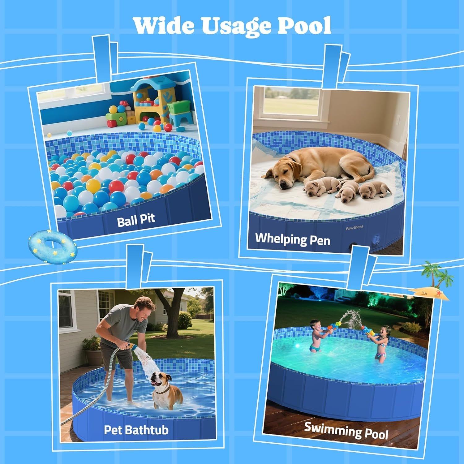 Piscina de vadeo de uso amplio: esta piscina portátil para perros es perfecta para citas de juego en el patio trasero, aventuras en el parque o viajes a la playa. Mantén a tu perro o niños frescos mientras crea recuerdos duraderos. El diseño multiusos funciona como un pozo de bolas, bolígrafo de parto para mascotas, bañera para perros o piscina