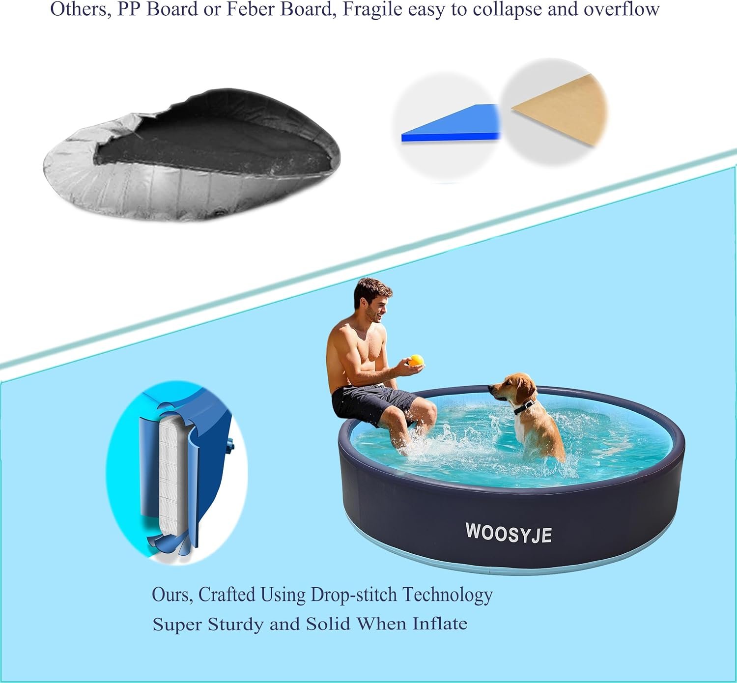 Innovador diseño inflable cepillado: esta piscina para perros está hecha de material de PVC grueso ultra duradero y artesanía de doble envoltura, mientras que utiliza un innovador diseño inflable cepillado para mantener su forma en su lugar sin importar cuán intenso sea el juego. Elimina las fugas de agua causadas por el colapso y la deformación. Deja que tú y tu mascota o hijo disfruten de un día de verano sin preocupaciones