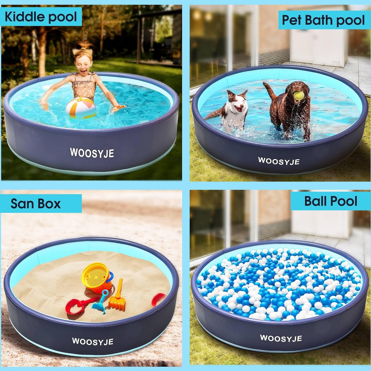 Versátil y práctica y divertida: esta piscina se puede utilizar como una piscina para niños, piscina para mascotas, bañera para perros, caja de parto o incluso como una caja de arena o piscina bobble. Ya sea que estés organizando una fiesta acuática de verano, bañando a tu perro o creando una mini zona de juegos para los niños, esta piscina es lo último imprescindible para el verano.