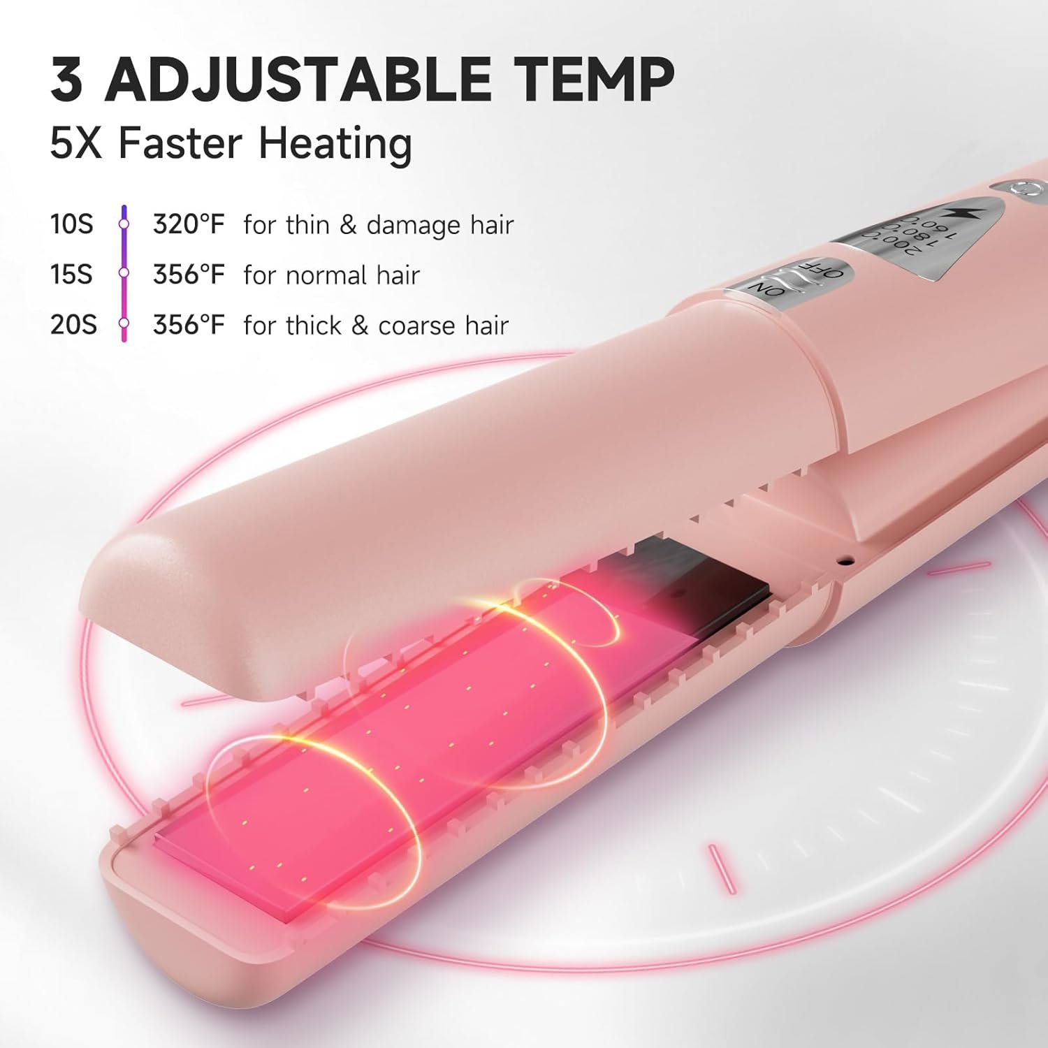 3 niveles de calor y bloqueo de seguridad: nuestro peine alisador de cabello inalámbrico ofrece 4 ajustes de calor ajustables: 320.0 °F/320°F, 356.0 °F/356°F y 392.0 °F/392°F. Para garantizar un uso más seguro de este producto, cuando la cubierta esté cerrada, la energía se cortará automáticamente. Para abrir la cubierta, debe abrir el bloqueo de seguridad para encenderlo normalmente