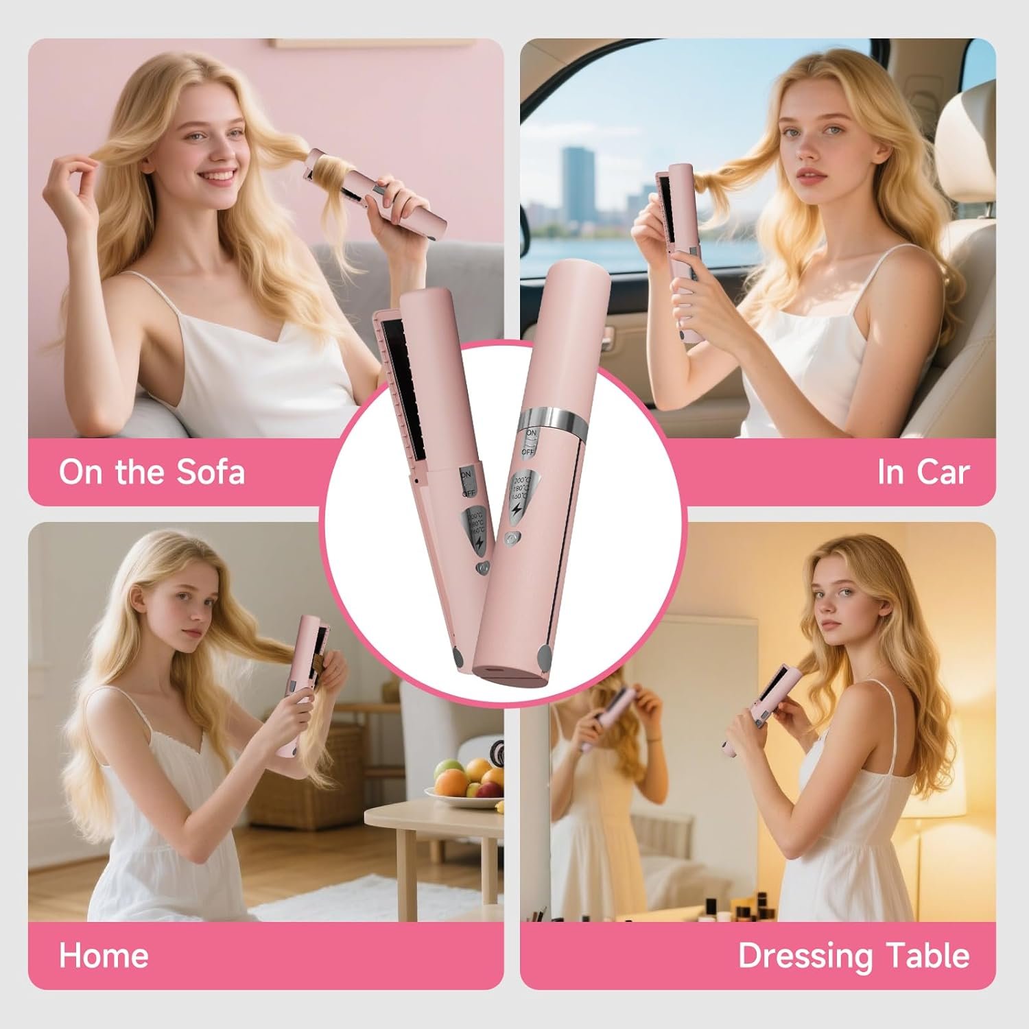 Opciones de estilo versátiles: este innovador alisador de pelo inalámbrico ofrece más que solo capacidades de alisado. Adecuado para todo tipo de cabello, crea sin esfuerzo mechones rectos sedosos u ondas playeras, por lo que es la herramienta perfecta para que los profesionales elaboren estilos impecables. * Asegúrate de que tu cabello esté seco cuando utilices el producto para lograr el efecto deseado.