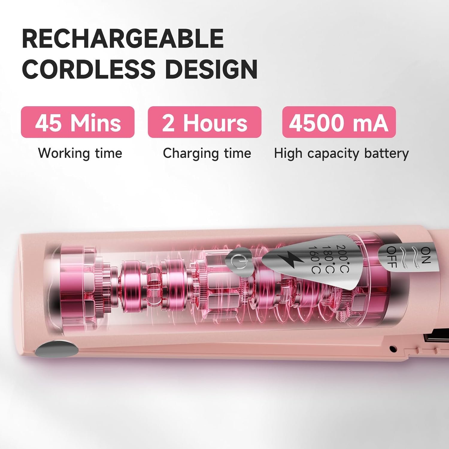 Una carga para 3-5 usos: esta plancha de pelo inalámbrica cuenta con una batería recargable de gran capacidad de 4500mAh que se puede cargar cómodamente con el cable USB tipo C incluido. Con solo una carga, puedes usarlo hasta 45 minutos, tiempo suficiente para alisar toda tu cabeza de cabello 3-5 veces.