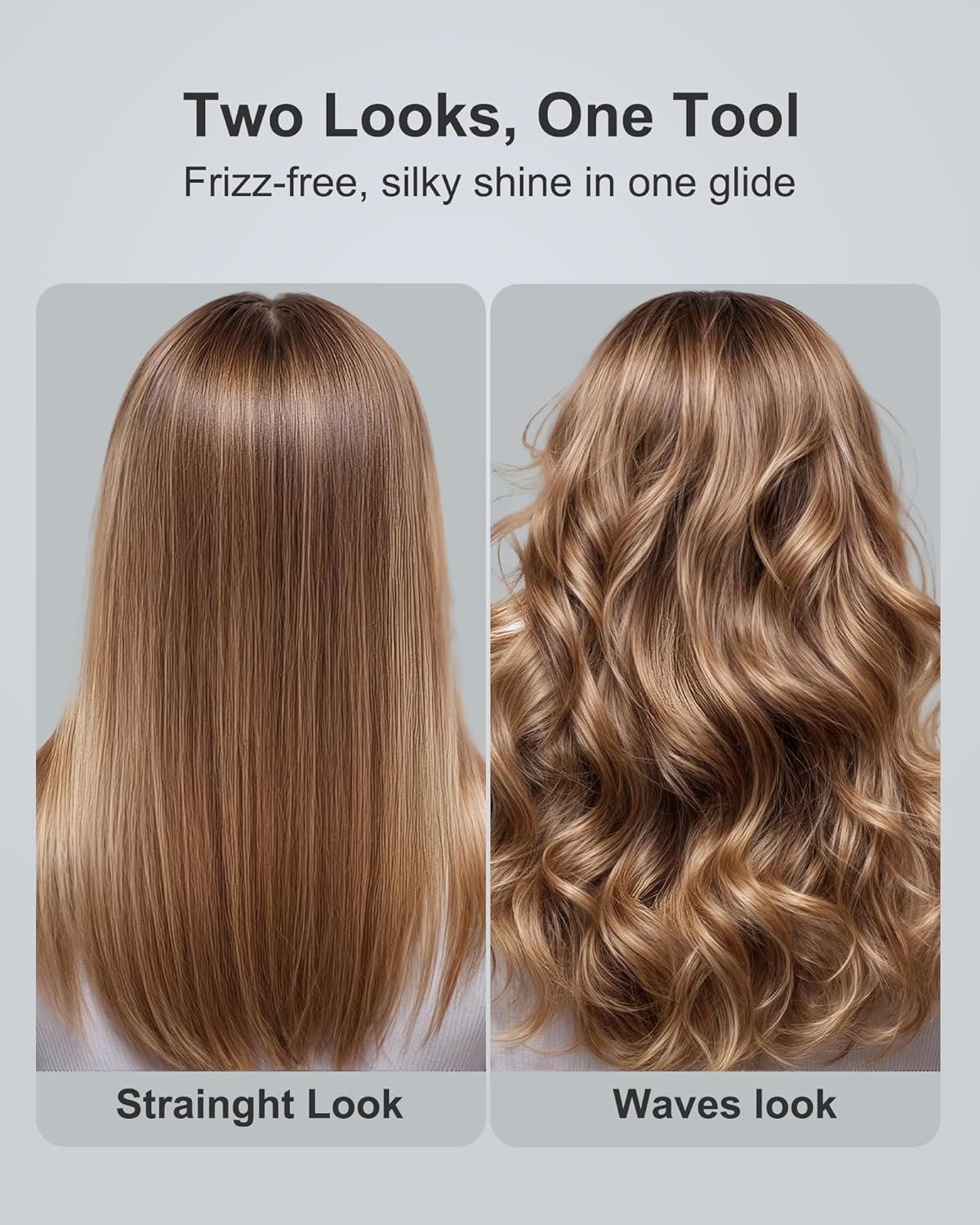 Estilo 2 en 1: recto o rizado con una herramienta: crea un aspecto liso elegante o rizos suaves y voluminosos con el mismo dispositivo. Las placas flotantes 3D mantienen un contacto uniforme a través del mechón para reducir los enganches y las pasadas, resultados más suaves para cabello fino, normal o grueso.