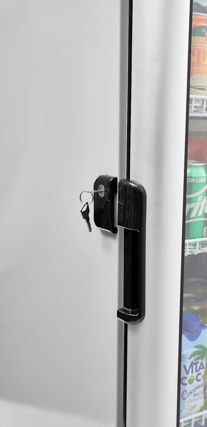 Mantén tu mercancía y bebidas seguras: nuestro refrigerador viene con una puerta con cerradura y un juego de llaves. Esto asegurará que su mercancía se mantenga segura, ya sea para evitar que los niños accedan a su cerveza y vino o para cerrar su mercancía por la noche.