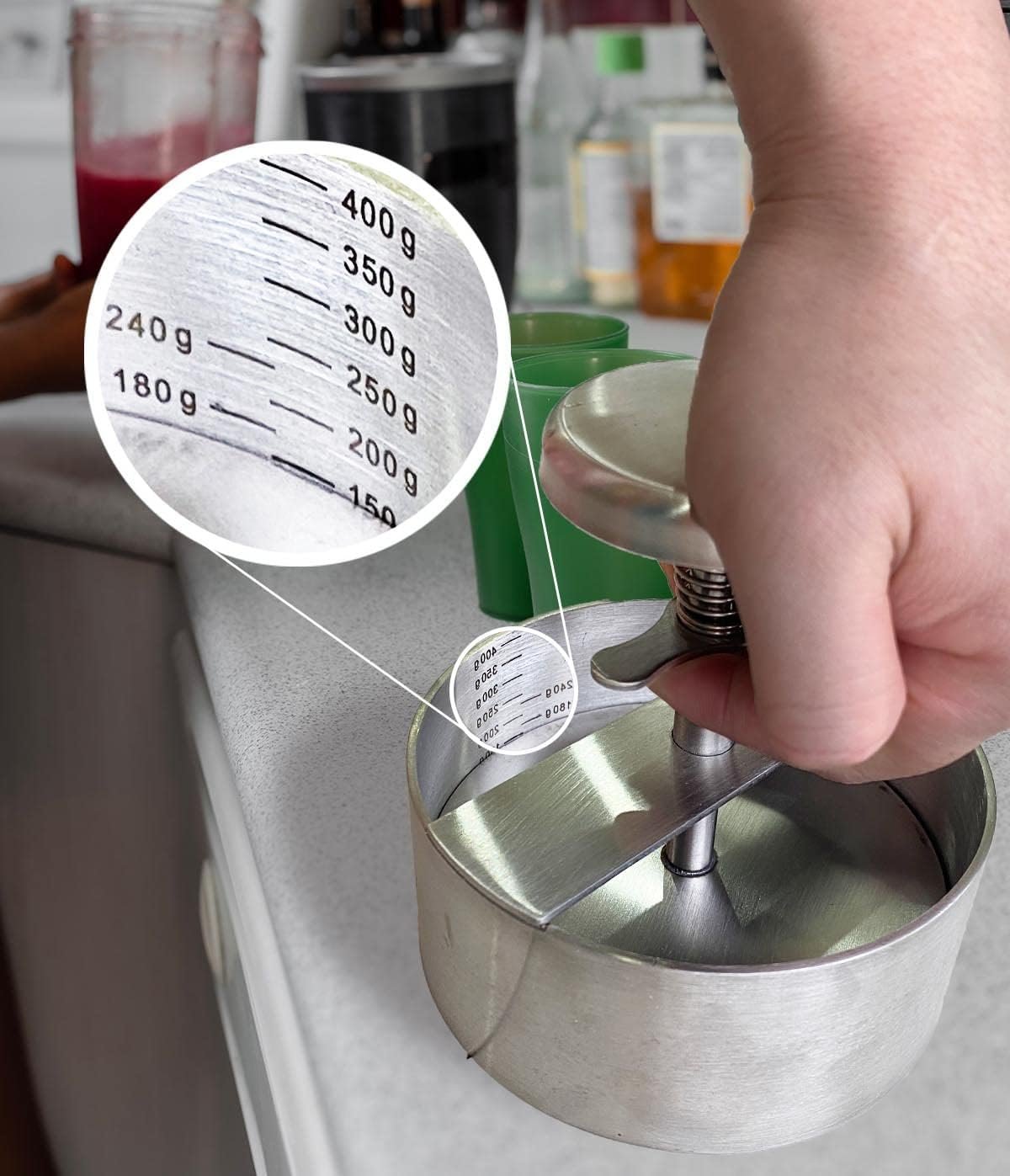 - Función ajustable: tenemos 10 escalas dentro de cada molde de hamburguesa de acero inoxidable, que marca claramente cuánta carne se necesita para cada grosor de hamburguesas. Puedes ajustarlo de acuerdo a tus necesidades y hacer fácilmente empanadas de varios tamaños, para satisfacer tus necesidades