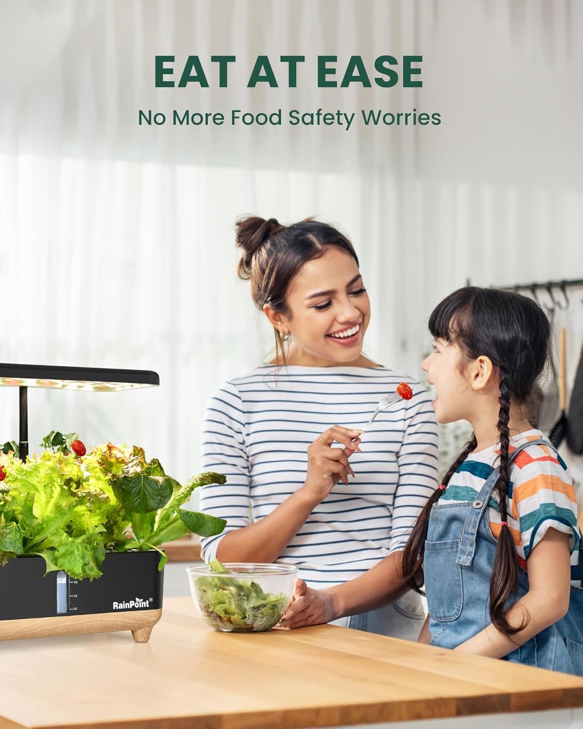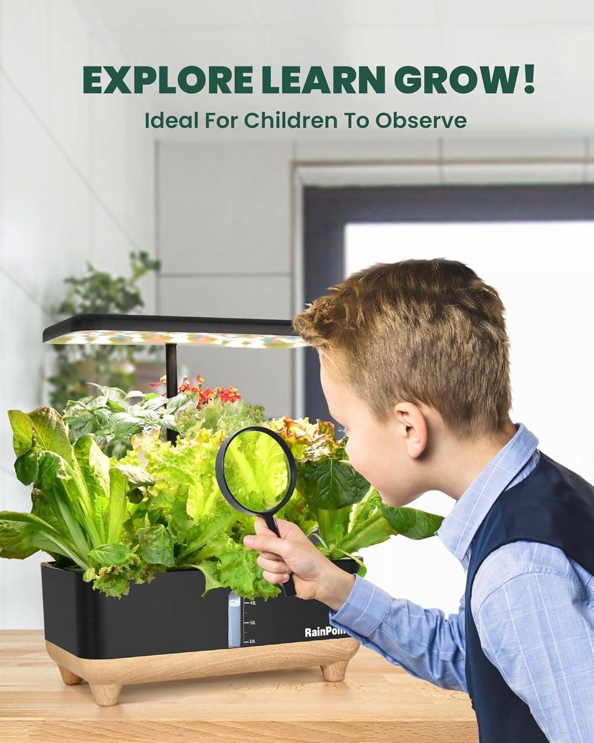 FRESCURA EN TU PLATO: ¡Descubre el secreto de lo fresco y saludable! Los kits hidropónicos de encimera RAINPOINT te permiten comer fresco, incluso en inviernos muy fríos. Di adiós a la inseguridad alimentaria y hola a una abundante cosecha de productos vibrantes y ricos en nutrientes.