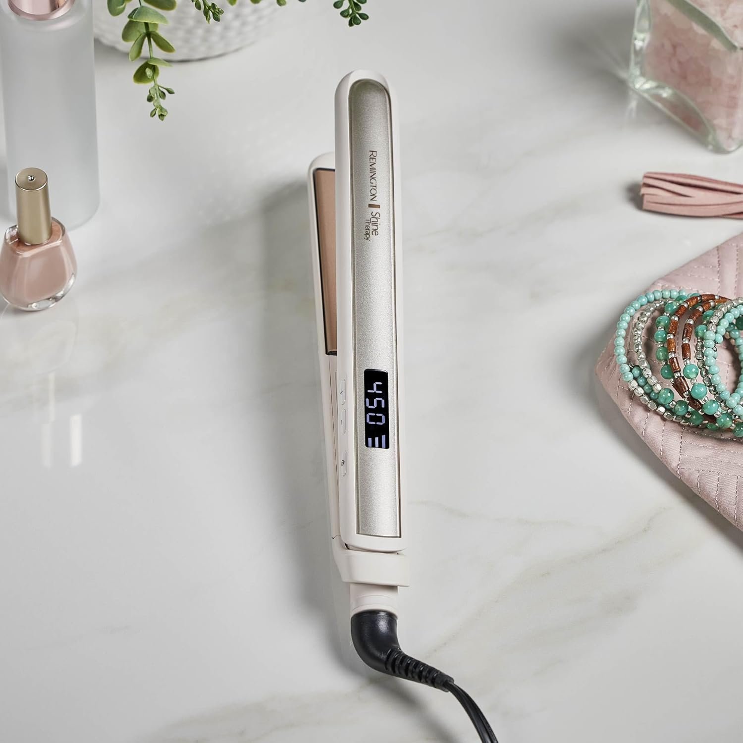 Brilla como nunca antes: logra hasta un 50% de cabello más brillante con la plancha de pelo de cerámica Remington Shine Therapy. Aumenta la salud y el brillo de tu cabello, haciendo que cada mechón cuente. Rejuvenece el brillo interior de tu cabello.