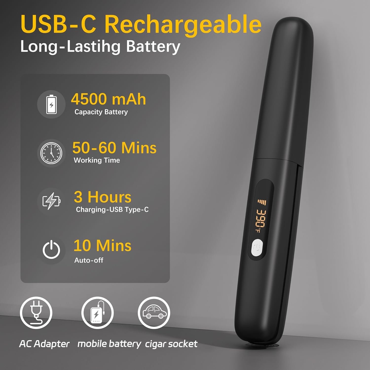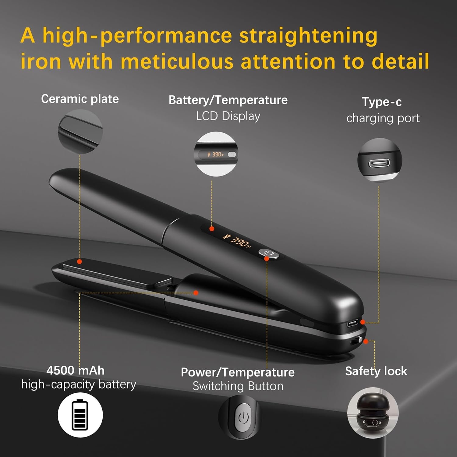 Batería grande y largo tiempo de funcionamiento: la batería de potencia de grado automotriz garantiza un calentamiento rápido y un rendimiento estable, ofreciendo 50 minutos de uso continuo a 390 °F a través de su capacidad de 4500 mAh con control de precisión de 4 temperaturas, optimizada para 390 °F cabello duro/grueso, 360 °F cabello fino/suave, 320 °F flequillo/pelo corto, y 280 °F cabello sensible/dañado. — apoyado por un Tiempo de carga de 3 horas.