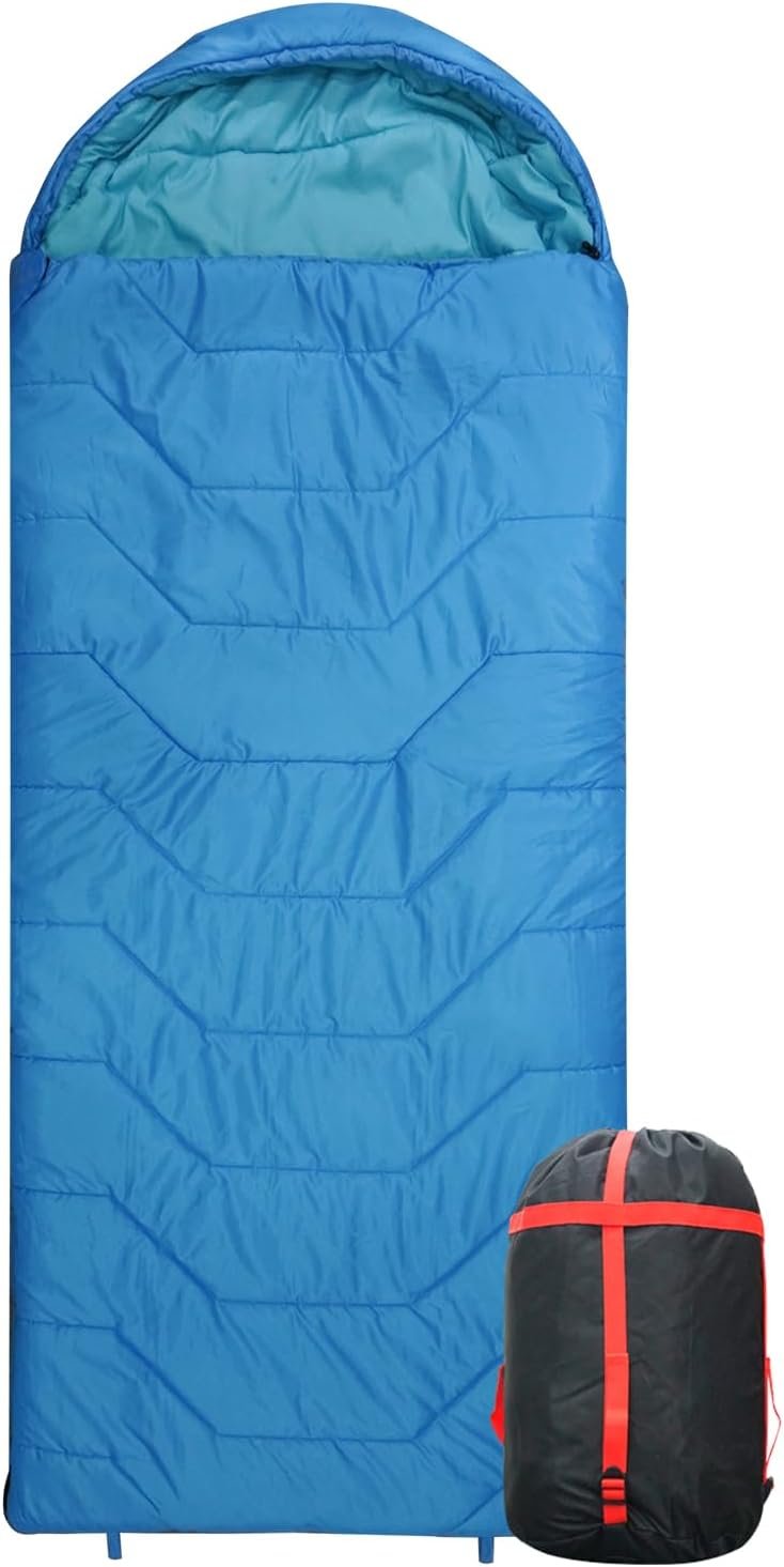 Saco de dormir jumbo para adultos y niños, clima frío y cálido con saco de compresión y resistente al agua para campamento familiar, viajes y camping en el automóvil