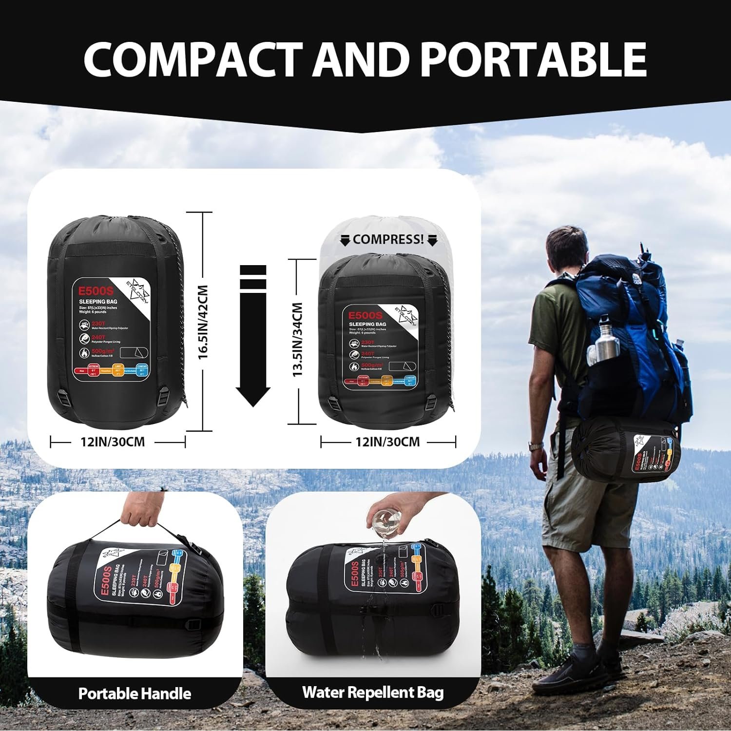 Saco de dormir para adultos y niños – 3-4 estaciones cálido y frío ligero para acampar y senderismo – compacto con saco de compresión – portátil para mochileros viajes en interiores – Unisex
