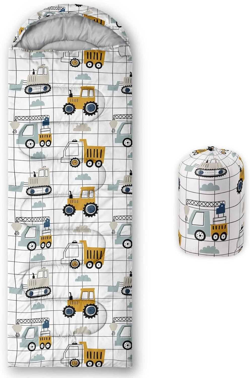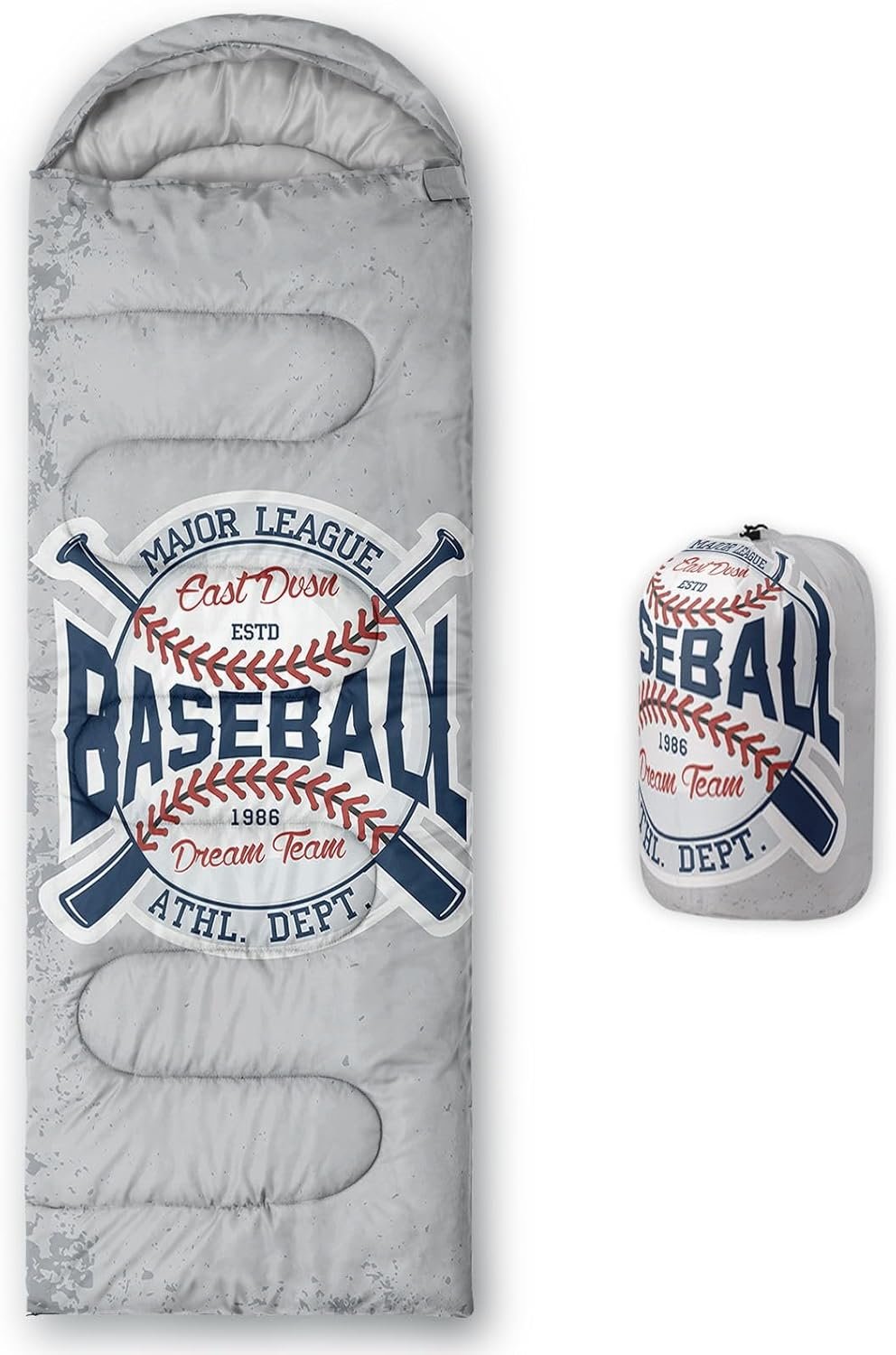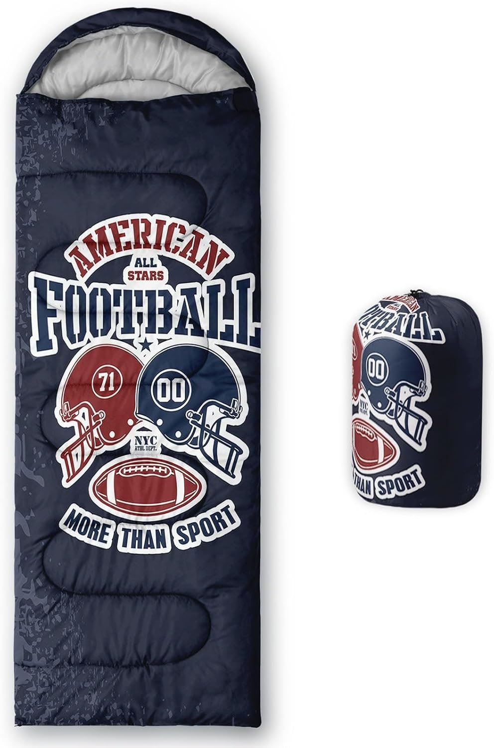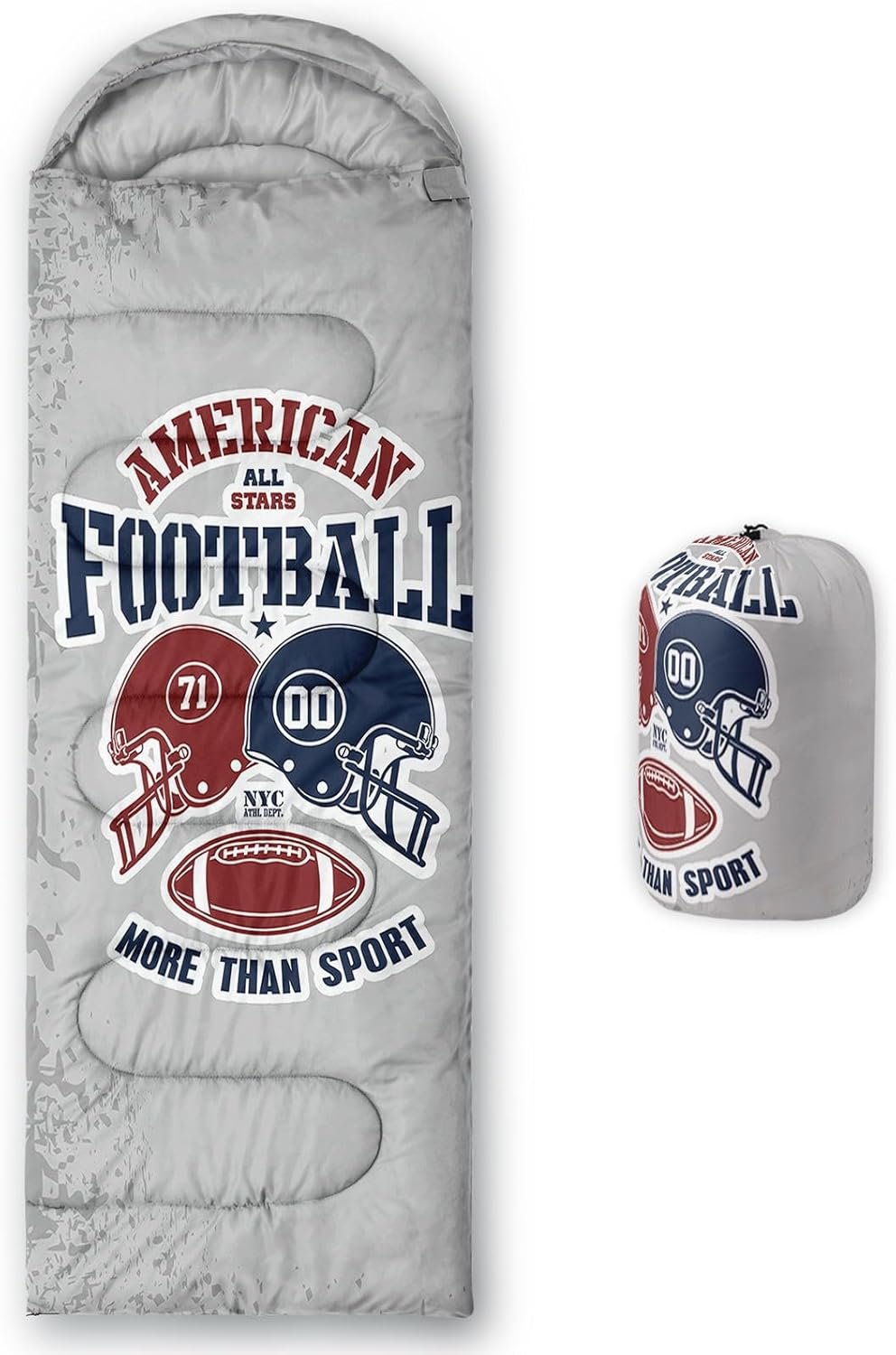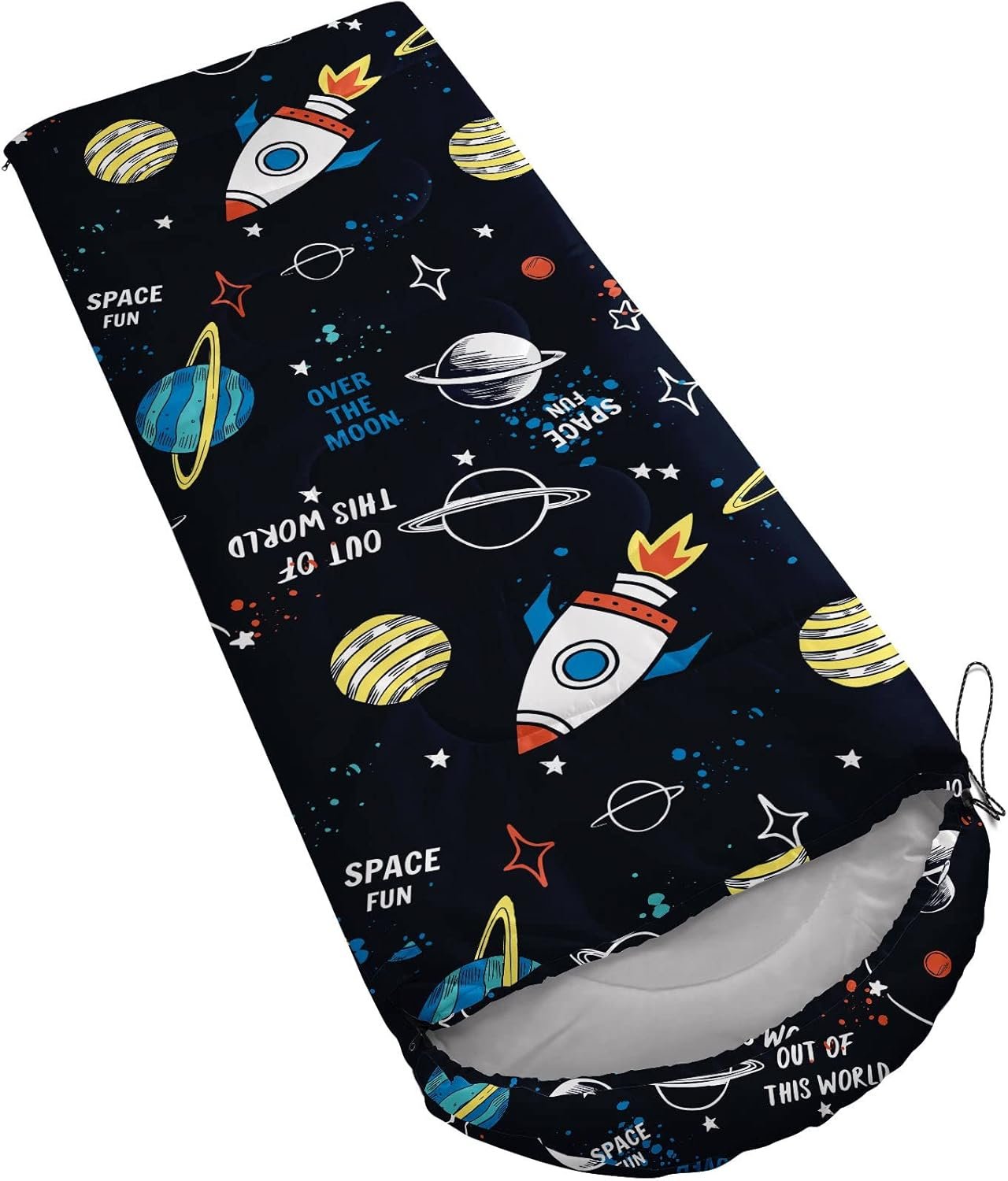 Saco de dormir para niños y niñas, estampado de luna de cohete, ligero, cálido, portátil, para exteriores, interior, impermeable, resistente al frío, para campamento, senderismo