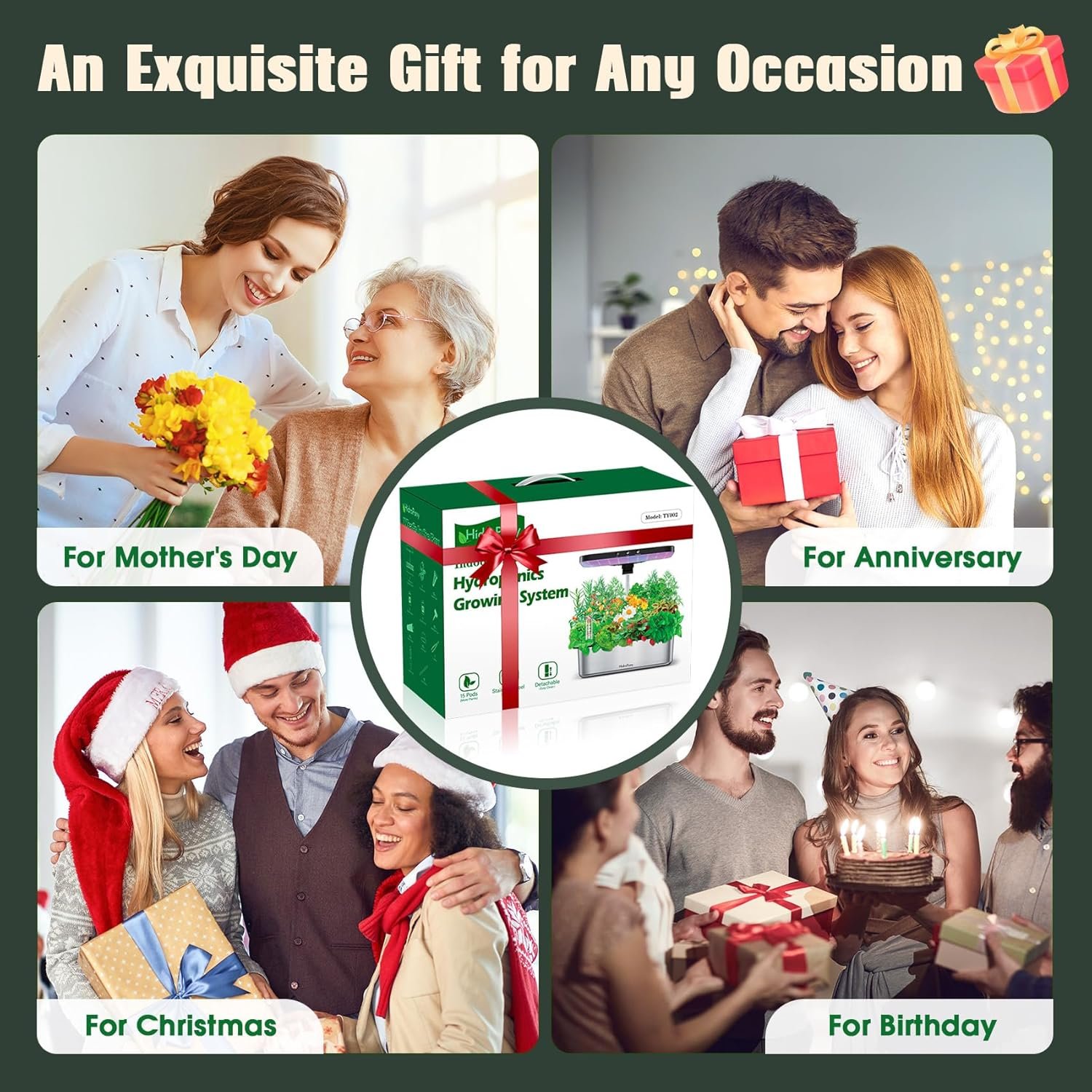 Sistema de cultivo hidropónico para jardín interior, jardín de hierbas con luz de cultivo, kit de jardín interior de acero inoxidable de 15 vainas, temporizador automático, regalo de jardinería para