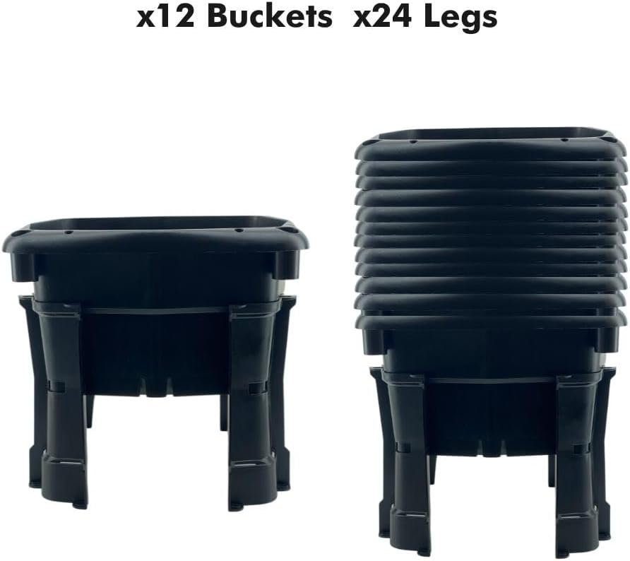 Sistema completo: incluye 12 cubos de plástico resistentes y 24 patas de cubo para una configuración integral de cultivo hidropónico.