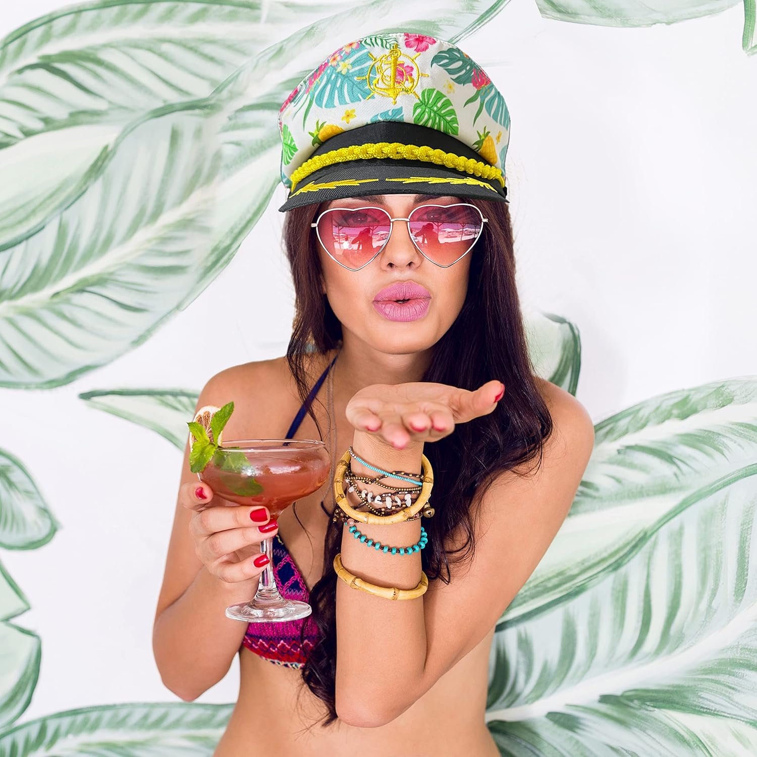 Sombrero de capitán marinero, sombrero azul marino, yate, barco, tropical, hawaiano, flores, regalos de fiesta, accesorios de disfraz para mujeres y hombres