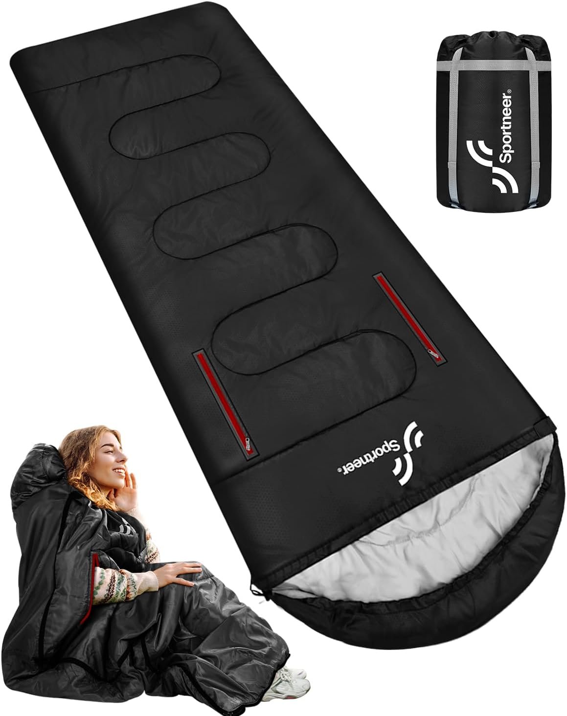 Sportneer Saco de dormir – para adultos y niños con agujeros de cremallera en el brazo en climas fríos y cálidos, saco de dormir portátil impermeable para camping, senderismo, mochileros, viajes al