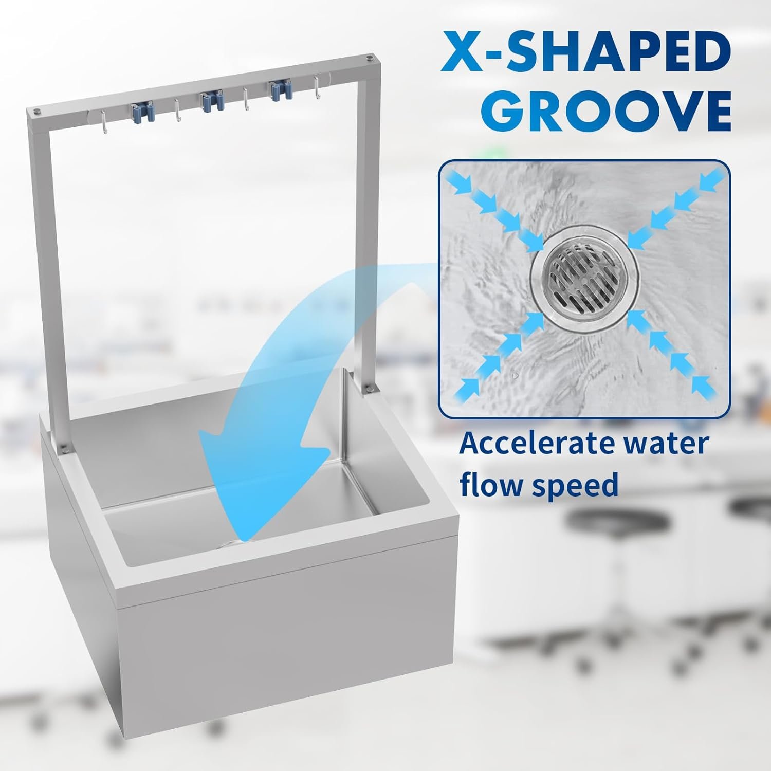 Lavabo espacioso: con dimensiones de 19 «x 21.6″ x 10.4», este fregadero de fregona de acero inoxidable ofrece un amplio espacio para facilitar la limpieza y el enjuague de trapeadores, cubos y otros equipos de limpieza.