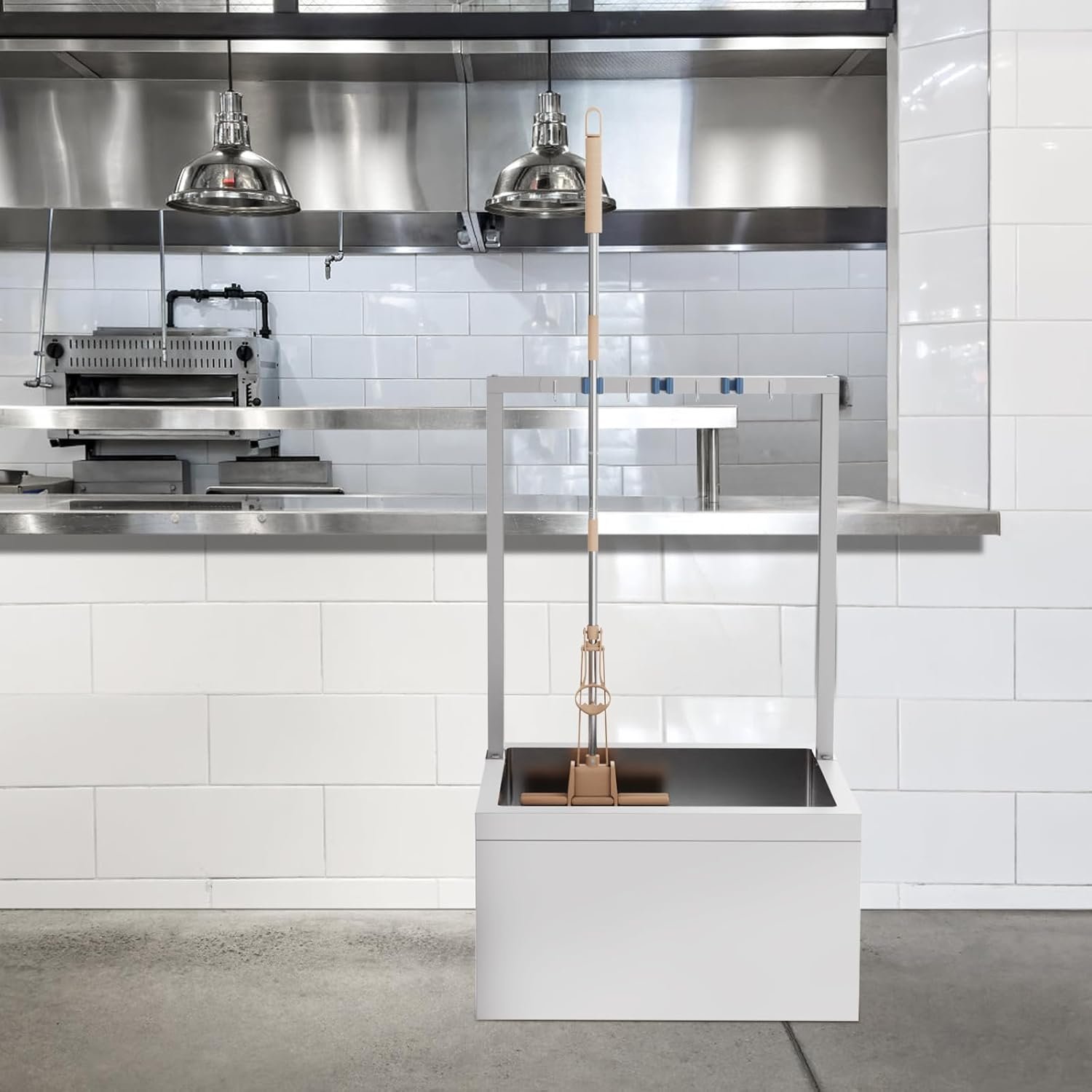 Práctico estante de herramientas de limpieza: equipado con un práctico estante de herramientas de limpieza, este fregadero comercial de fregona proporciona una solución de almacenamiento conveniente para trapeadores, escobas y otros elementos esenciales de limpieza, ayudándote a mantener un espacio ordenado y organizado.