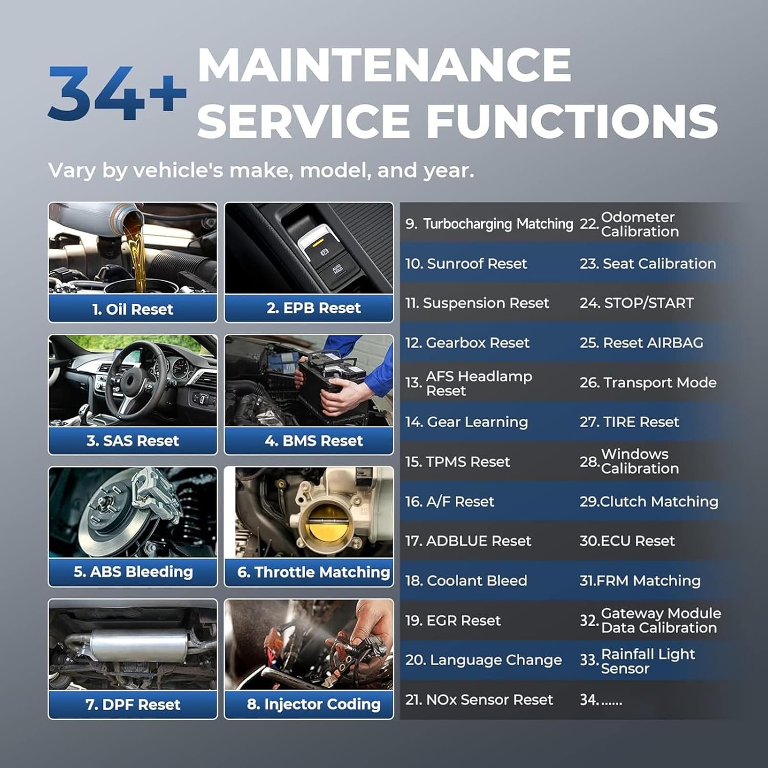 200 MODELOS DE VEHÍCULO DE DIAGNÓSTICO DE NIVEL OE, SERVICIO DE RESET 34+: Equipado con todas las funciones de diagnóstico del sistema, el Phoenix Lite 2 puede realizar funciones básicas que incluyen búsqueda de ECU, leer y borrar códigos de falla, leer flujo de datos para más de 200 modelos, compatible con GM, FORD, TOYOTA, BENZ, BMW y más, hasta 2025. Ofreciendo 34 servicios de mantenimiento, incluido el restablecimiento de aceite, reinicio de EPB, restablecimiento de suspensión para satisfacer todas sus necesidades. Consulte el menú de funciones especiales en el sistema específico para obtener más funciones