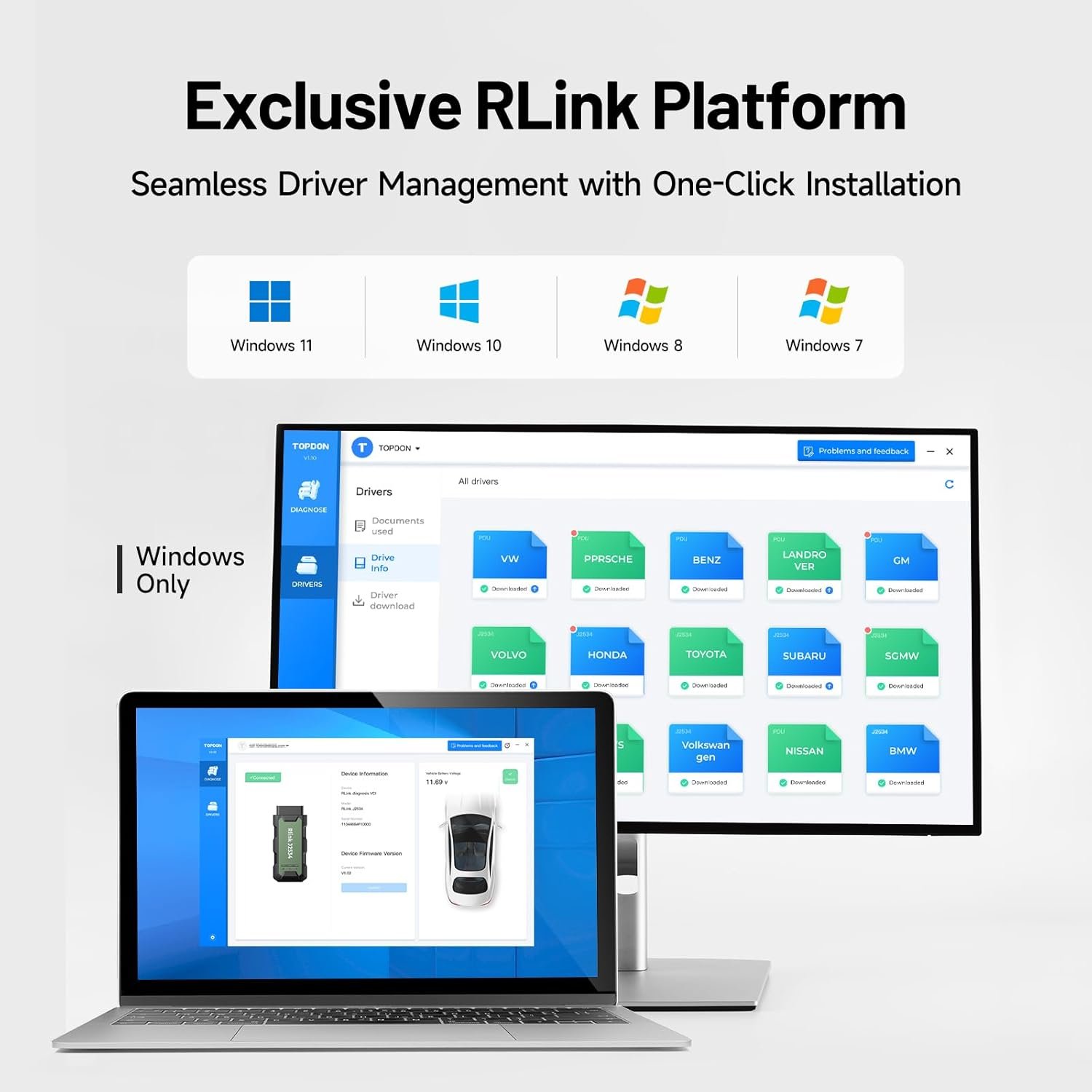 Excelencia integrada, siempre actualizada: Con la exclusiva plataforma RLink para proporcionar una experiencia optimizada con la instalación y administración de controladores con un solo clic, asegurando una integración perfecta con su software OE, manteniendo la calidad de rendimiento original. La guía de operación integrada hace que el dominio del software OE sea rápido y fácil, para que pueda comenzar de inmediato. Además, con actualizaciones gratuitas de por vida, sus diagnósticos se mantendrán actualizados con los últimos controladores e innovaciones