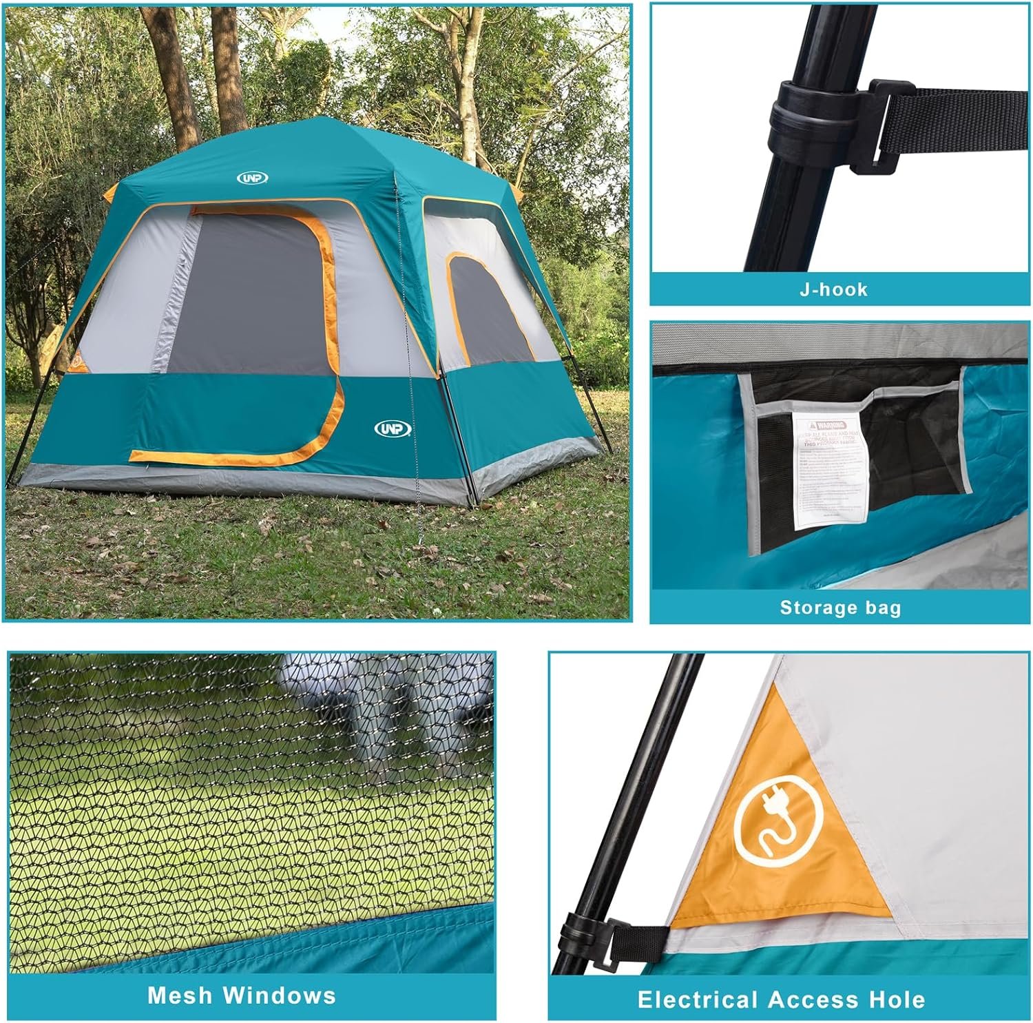 UNP Tienda de campaña para 2/4/6/8 personas, tienda de campaña portátil, tienda de campaña para 4 personas, fácil de instalar, impermeable con parte superior de lluvia para acampar al aire libre y