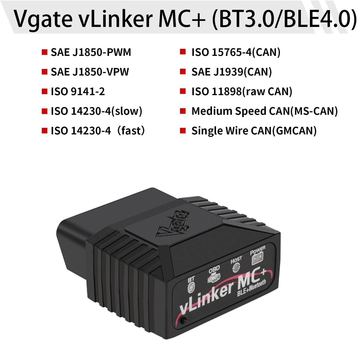 Amplia compatibilidad con vehículos: el Vgate vLineker MC+ BT3.0/BLE4.0 funciona adecuado para todos los vehículos de gasolina de 12 V y vehículos diésel pequeños de 12 V capacidad de carga 6.5T o menos fabricados en 1996 y posteriores, compatible con el protocolo OBD2. Además del protocolo OBD-II estándar, también es compatible con los protocolos SW-CAN y MS-CAN, permitiendo el acceso a las redes propietarias de marcas como GM y Ford. NOTA: No utilizar en un coche diésel de potencia de 24V;