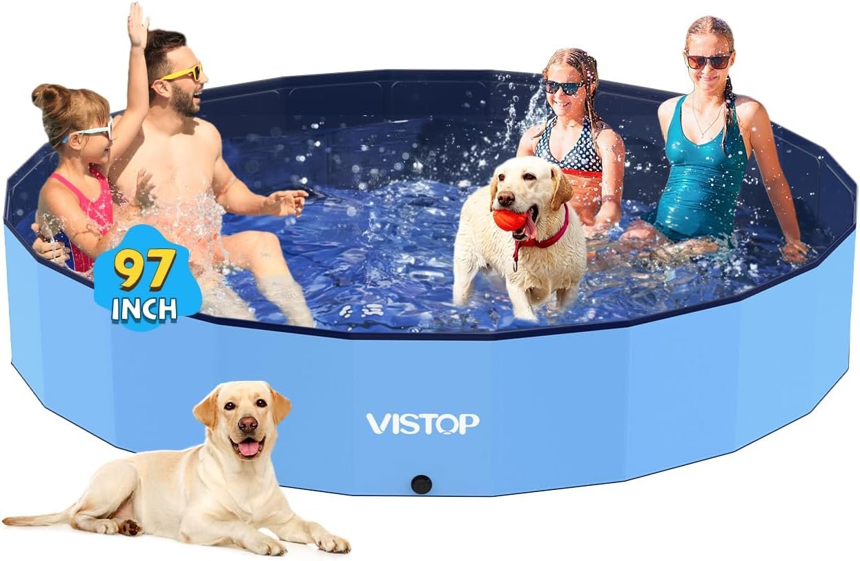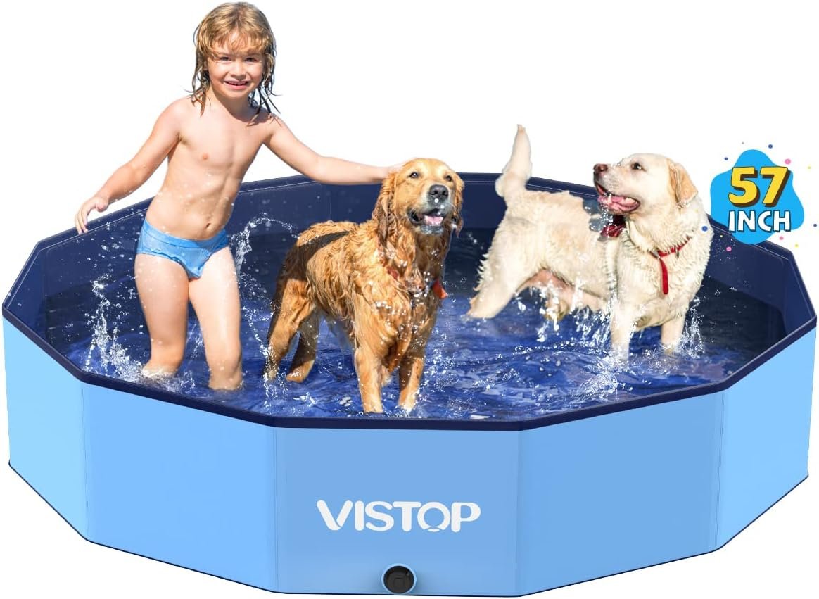 VISTOP Piscina plegable jumbo para perros, cubierta de plástico duro, piscina portátil para perros, gatos y niños, mascotas, bañera plegable para cachorros 77 pulgadas de profundidad x 15.7 pulgadas