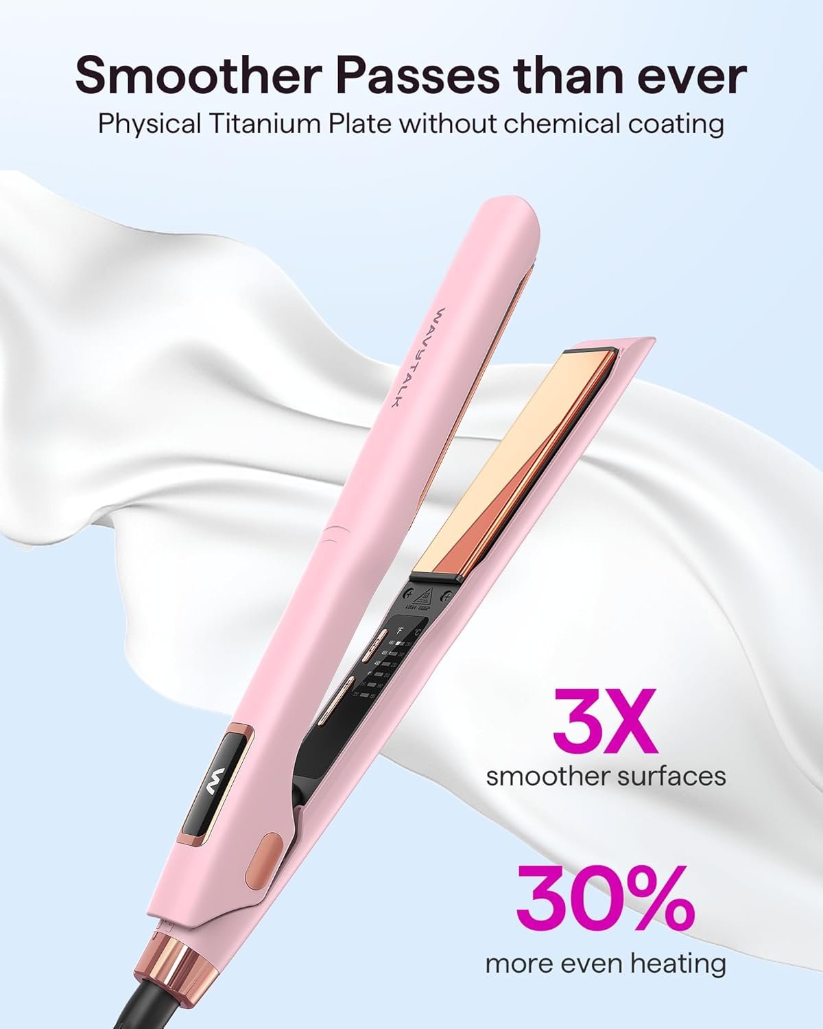 Wavytalk Plancha plana profesional 2 en 1, plancha plana de titanio para alisador de calor rápido, deslizamiento y brillo de una pasada Wonder 10S con doble voltaje 1.18 pulgadas