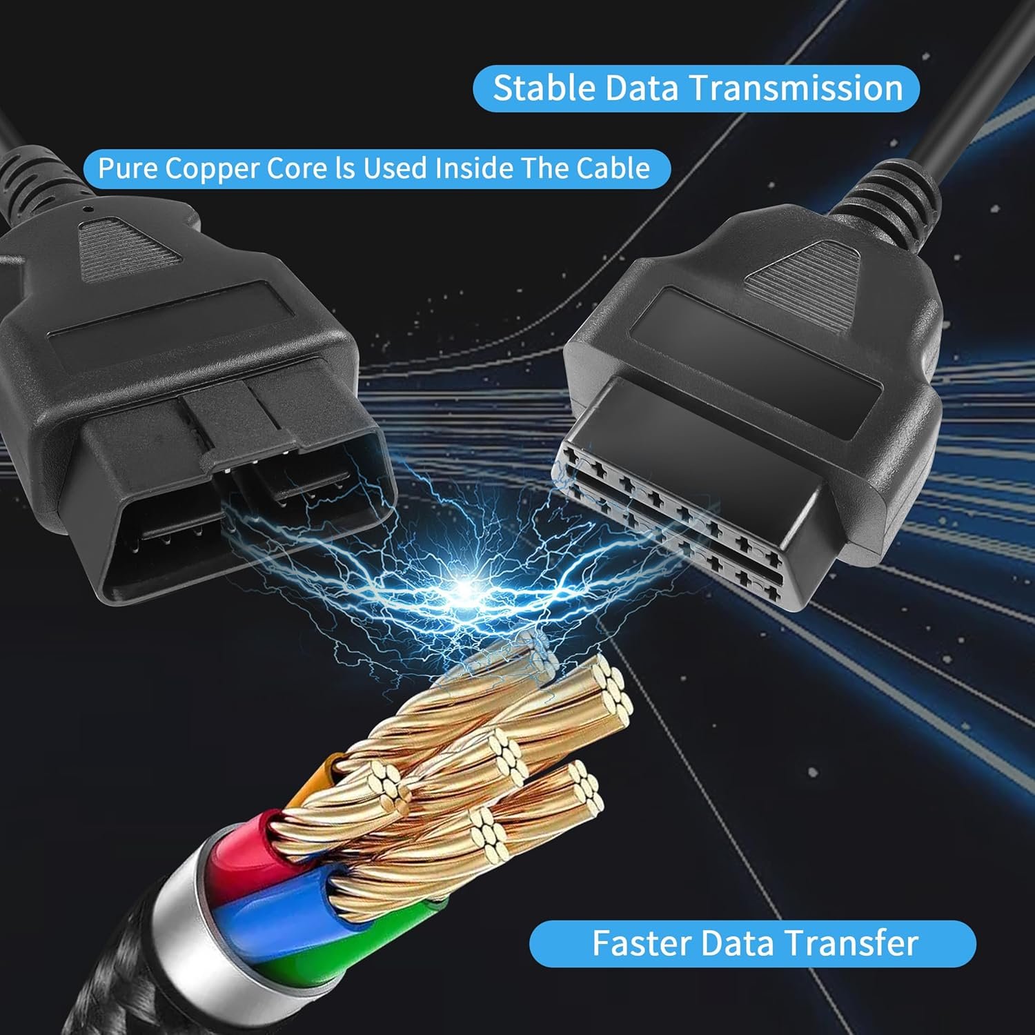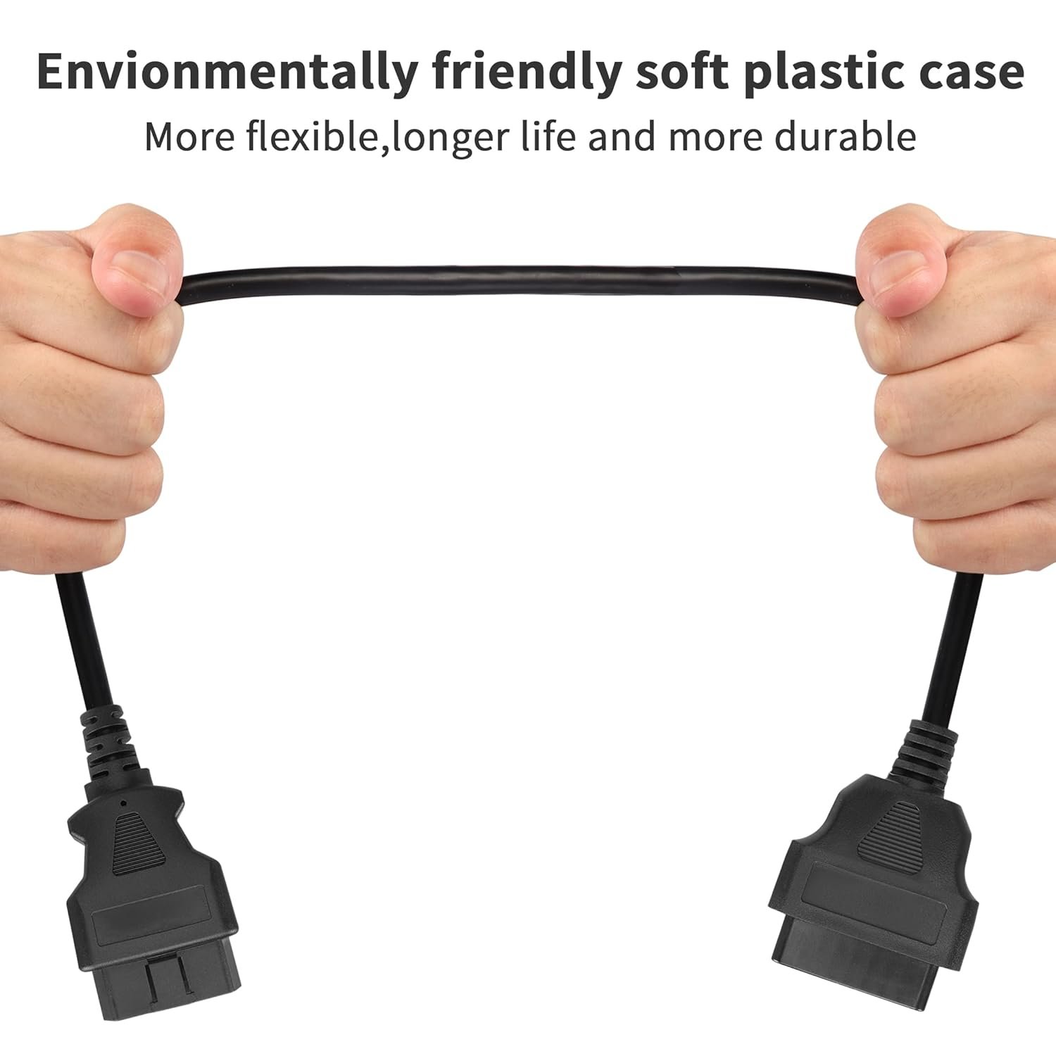 [Alta calidad] El cable ODB2 está hecho de alambre de cobre puro de alta calidad y plástico aislado para evitar cortocircuitos y riesgos de seguridad debido al sobrecalentamiento. Alambre redondo y resistente que no se agrieta fácilmente incluso después de un uso prolongado. Los materiales de alta calidad le dan al convertidor OBD2 una flexibilidad y durabilidad superiores.