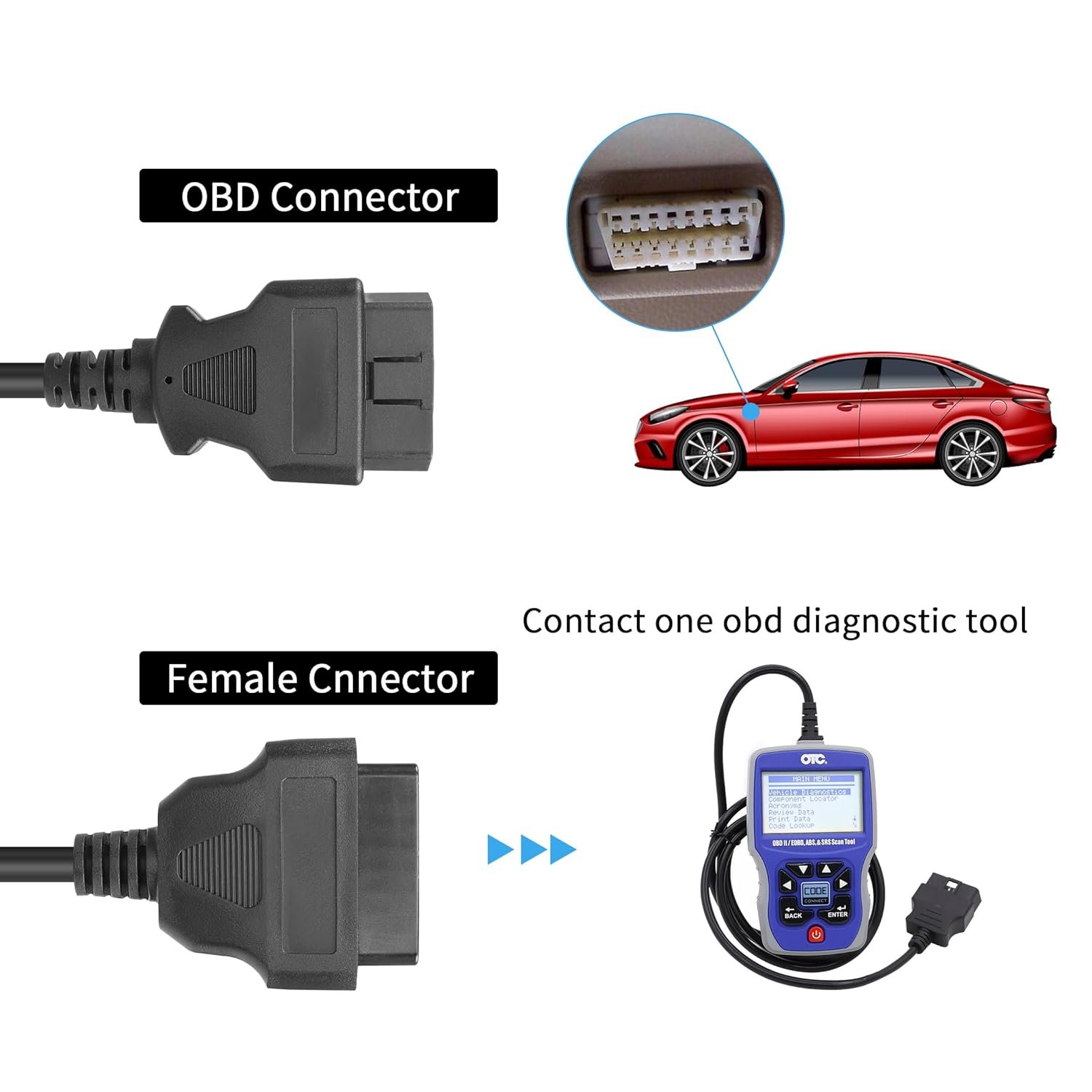 [Fácil de instalar] El adaptador OBDII cumple con los requisitos originales y se puede instalar conectando el lado macho al zócalo OBD2 del automóvil y el lado hembra a un escáner OBD2 o herramienta de diagnóstico. Plug and Play.