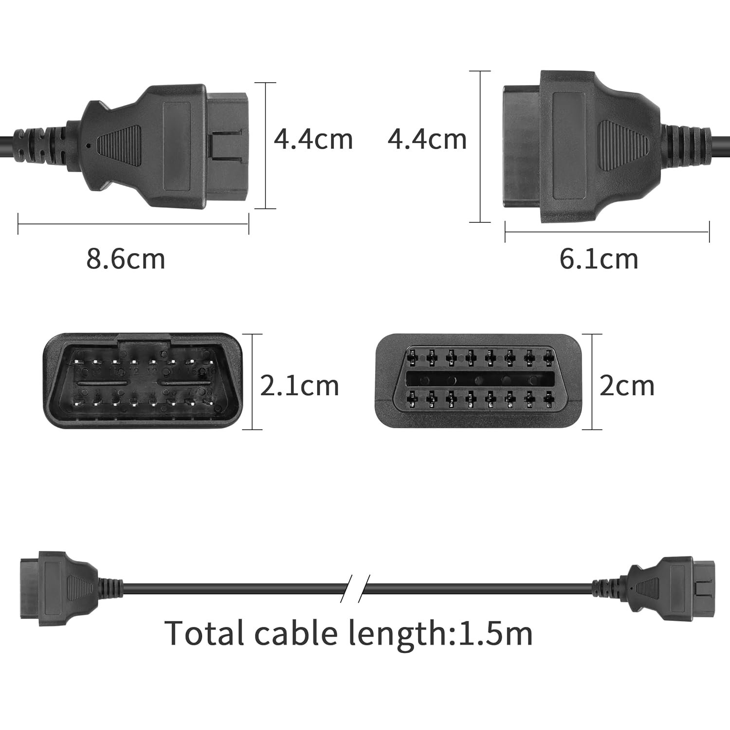 YACSEJAO Cable de extensión OBD2 de 16 pines 4.9 pies OBD II macho a hembra adaptador extensor de diagnóstico para OBD2 OBD herramienta escáner OBD2 vehículos