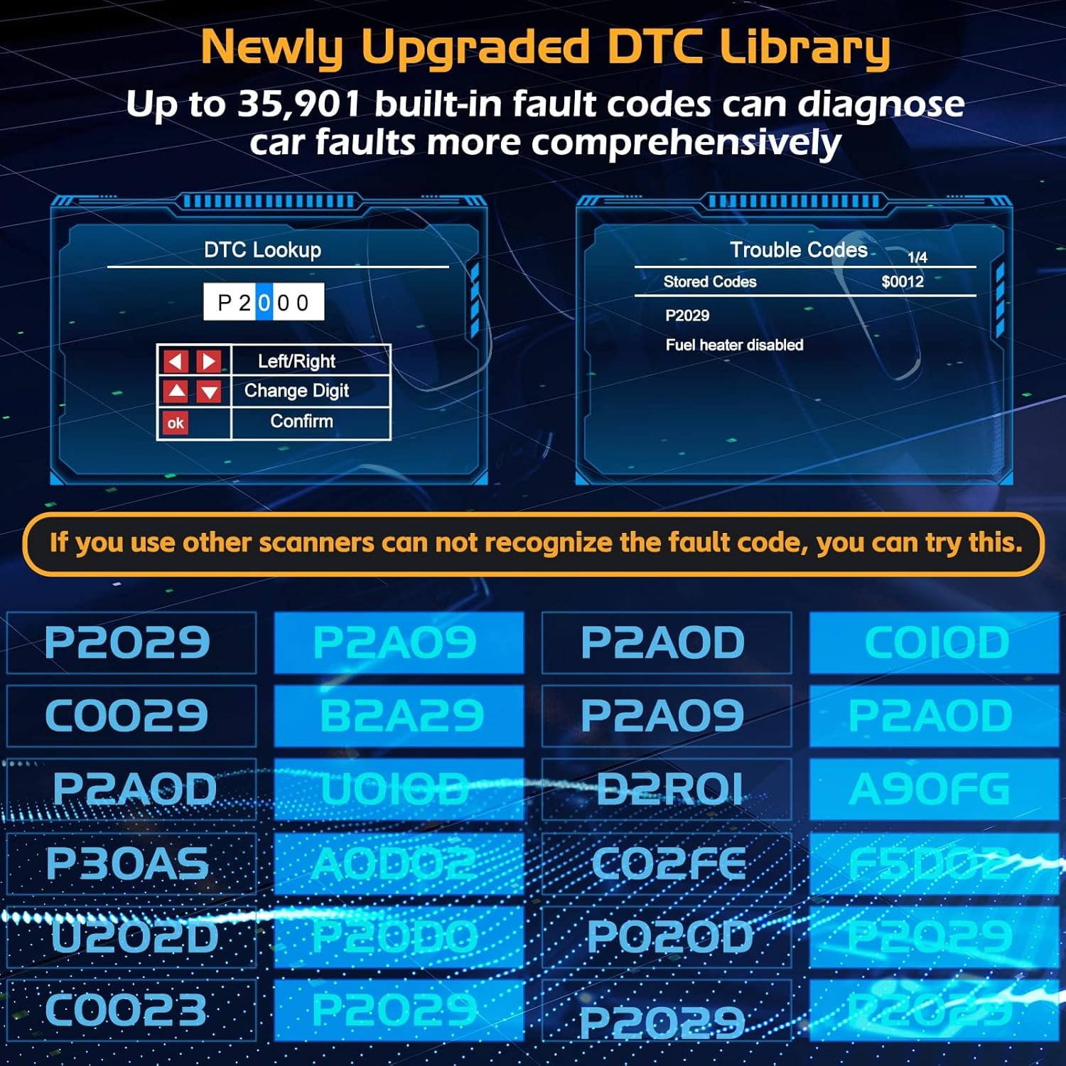 Búsqueda de 35,901 DTC: Lector de código de automóvil ZM201 incorporado 35,901 DTC, el modelo antiguo obd2 generalmente solo tiene 3,000-10,000. Por lo tanto, el escáner de automóvil ZM201 tiene una gran ventaja, lo que significa que este escáner obd2 puede ayudar mejor a diagnosticar y resolver las fallas de su vehículo. Esta es una gran opción si desea reemplazar o actualizar un escáner de automóvil existente.